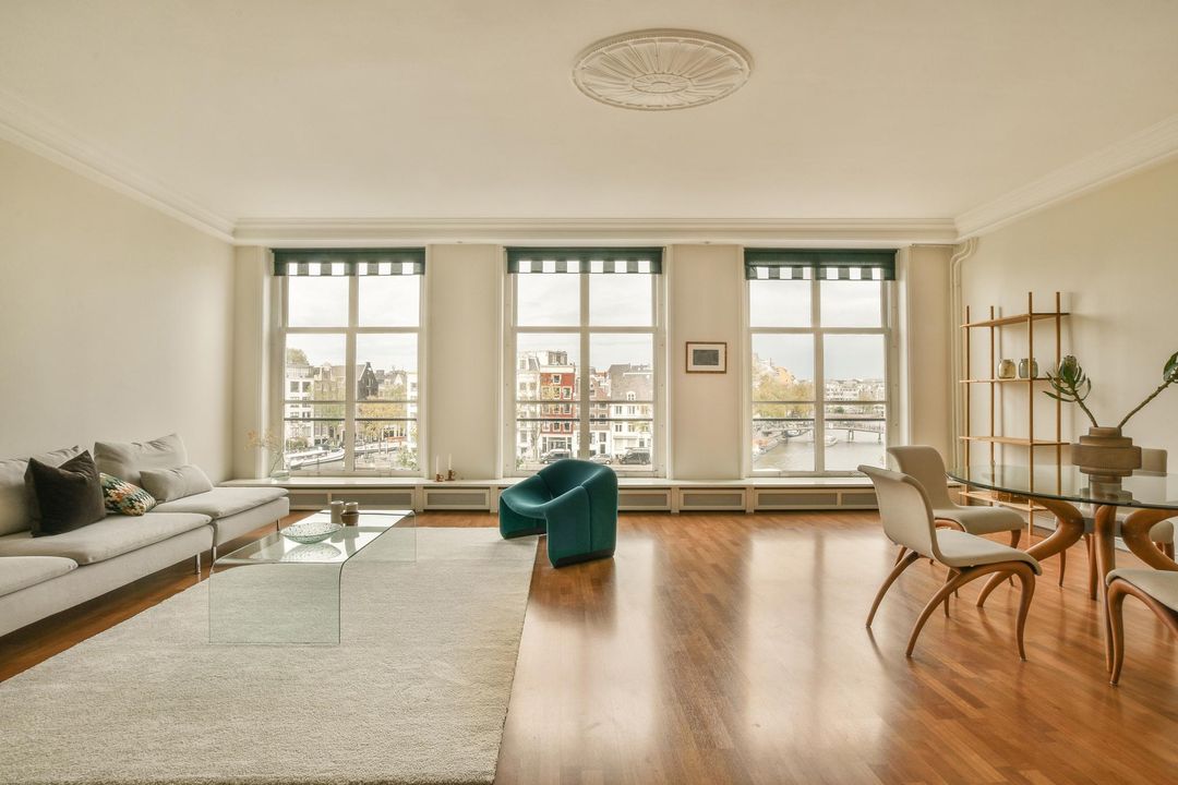 * Lage raampartijen met panoramisch vrij uitzicht op de Amstel