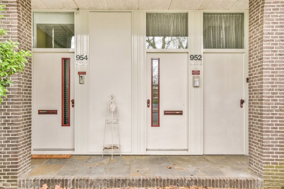 Bij de uitvoering van een potentiële opbouw van nummer 956 zullen op de 2e verdieping links de ramen aan de zuidzijde van het appartement moeten worden verwijderd/geblindeerd.