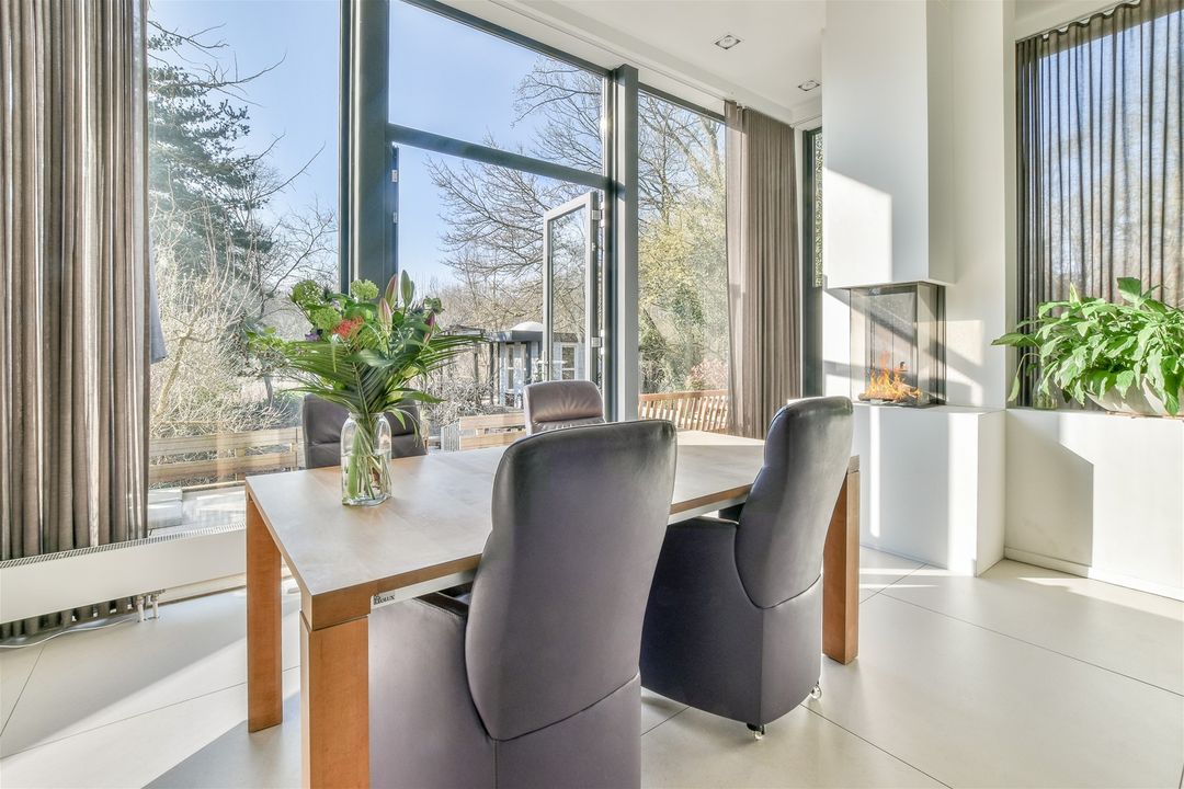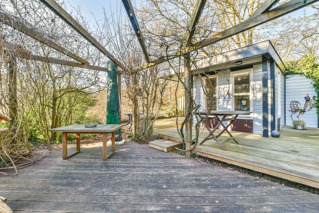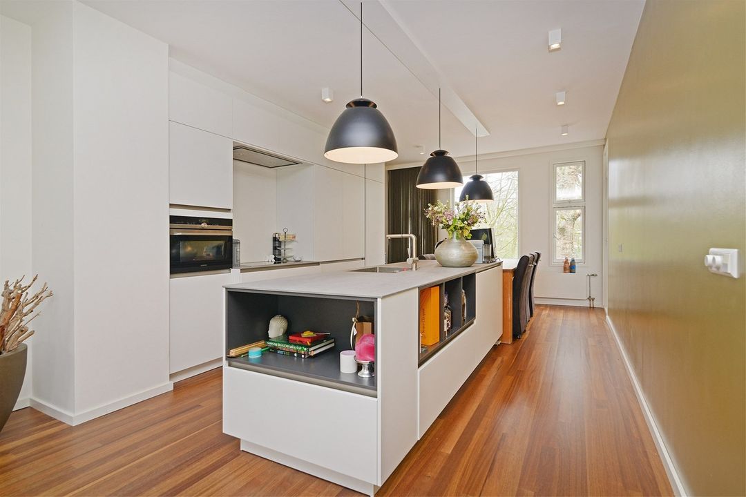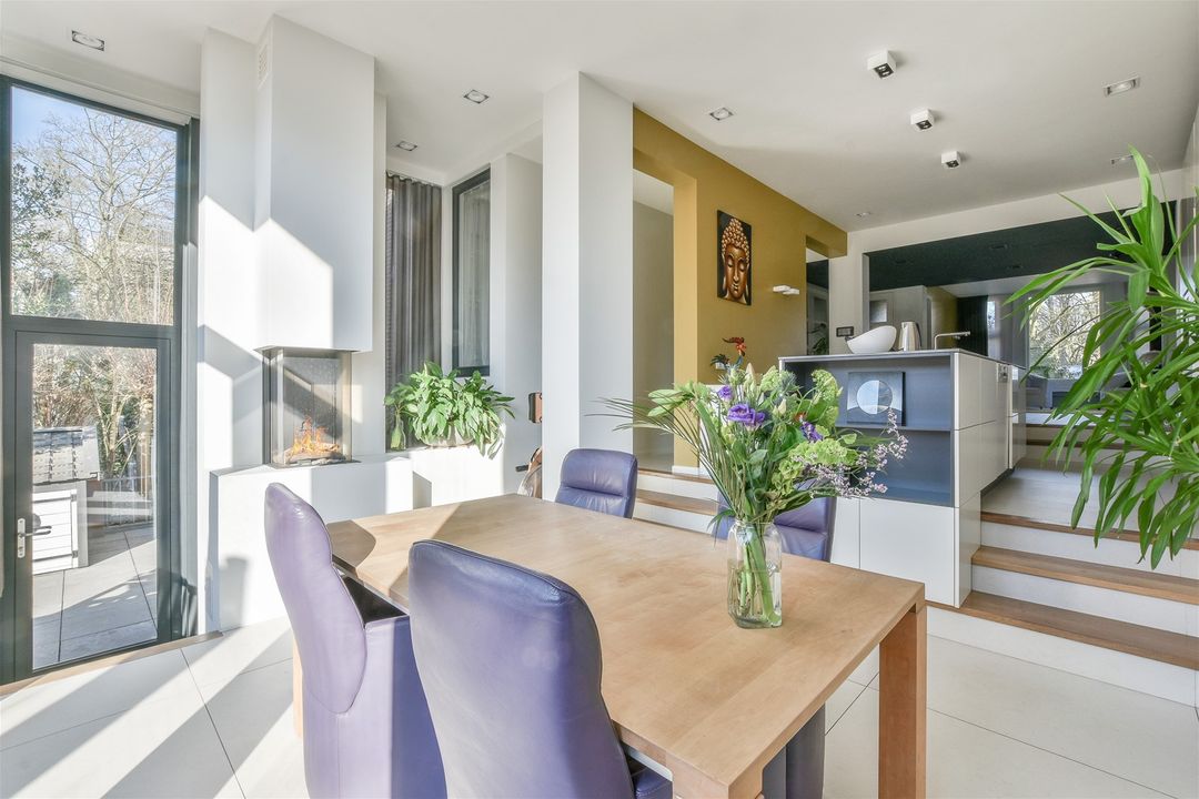 Begane grond: eigen entree (2x), riante woon-/eetkamer, luxe keuken met diverse apparatuur, een zonnige zitkamer met grote openslaande deuren naar de tuin op het westen met speelse hoge verdiepingshoogte (3,5m) en gashaard. Riante tuin gelegen aan het water en het Bos. Voorzien van 3 slaapkamers, waarvan 1 met douche en wastafel. Ruime badkamer met bad, separate douche en toilet. Er is tevens een gastentoilet aanwezig. Trap vanuit de eetkamer naar het souterrain met een open vrij indeelbare ruimte van 7.62m x 6.92m, inclusief een fietsenberging. Raampartijen aan de tuinzijde. Fietsenberging is eveneens vanaf de straat te bereiken hierdoor zéér geschikt voor logees en/of au-pair. Zie foto’s 1 t/m 39.
