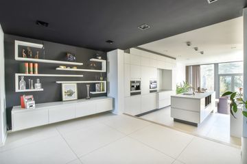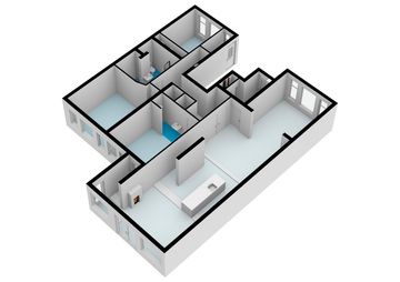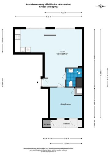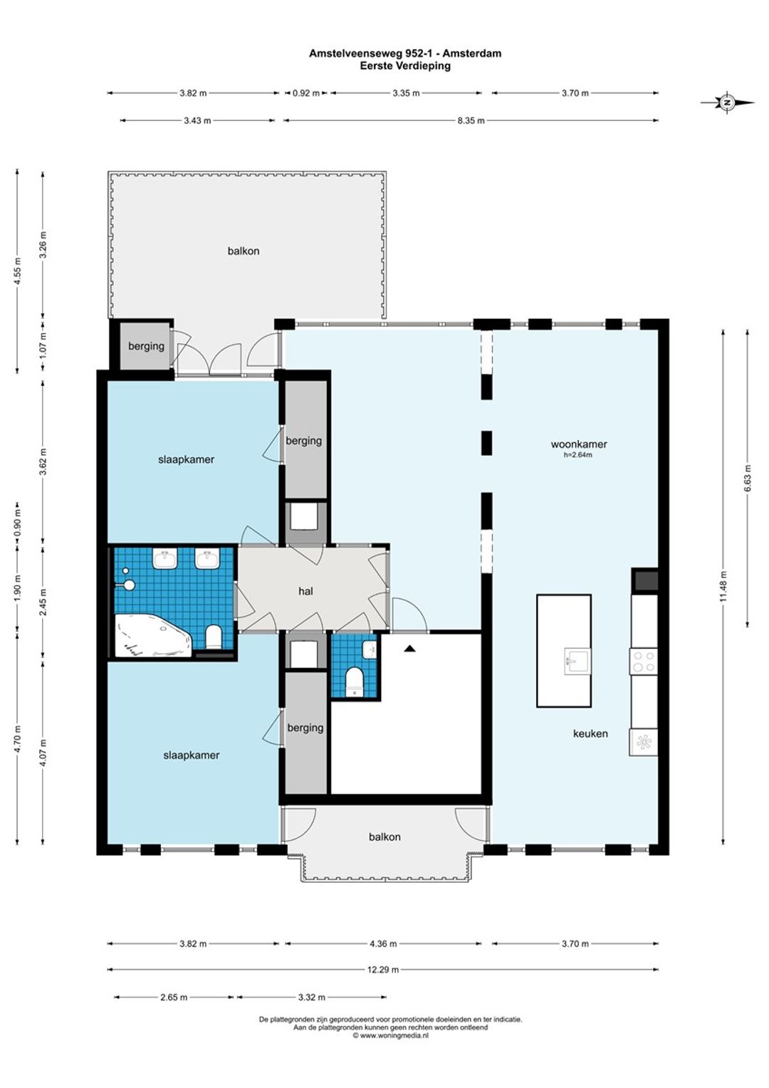 Riante L-vormige woonkamer (waarbinnen een evt. 3e slaapkamer te creëren is) met open keuken met kookeiland, 2 grote slaapkamers met ieder een inloopkast, badkamer met ligbad, douche, toilet en dubbele wastafel. Riant balkon op het westen met zicht op het Amsterdamse Bos. Separaat gastentoilet. Zie foto’s 40 t/m 51.