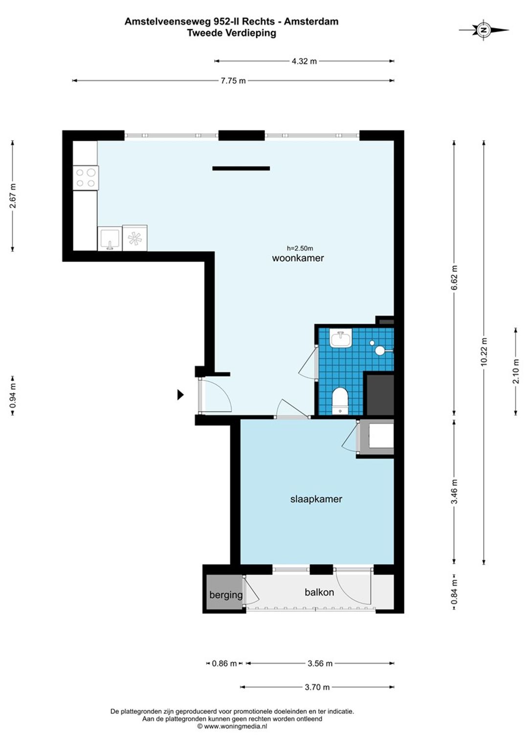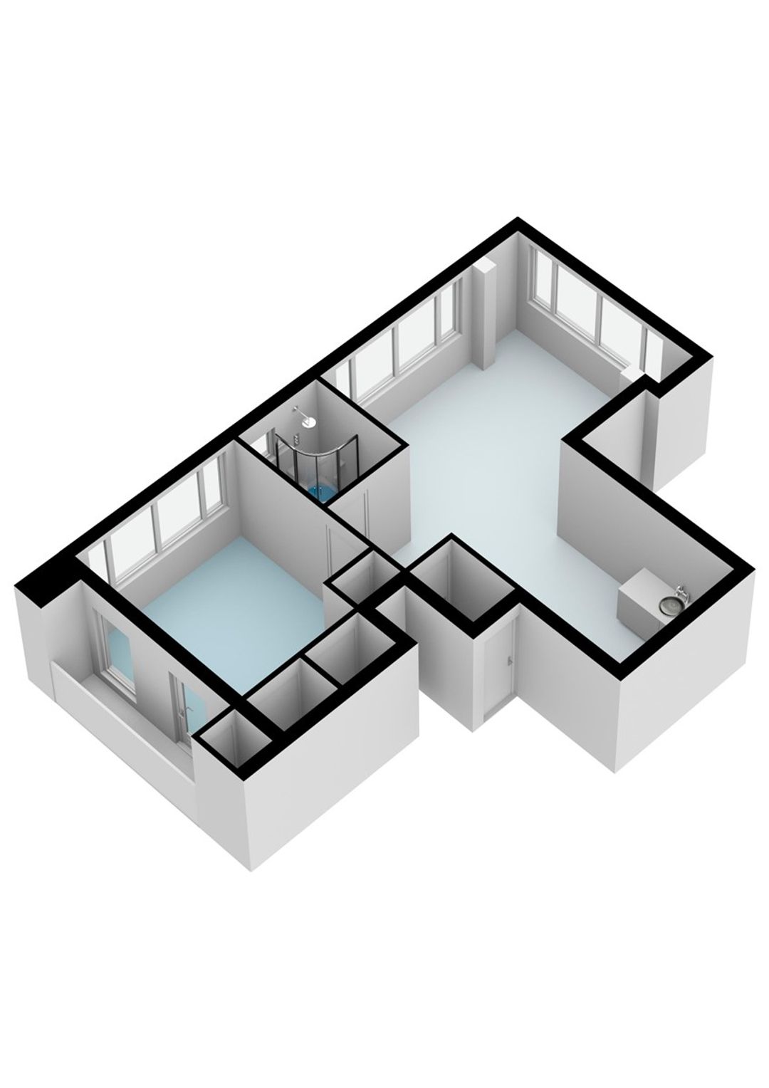 – 51m² – 2e verdieping bereikbaar via centraal trappenhuis met lift, studio appartement met eigen badkamer en keuken, verhuurd tot 14-10-2022;