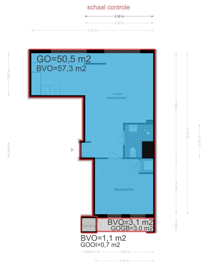 Het verkochte is gemeten met gebruikmaking van de meetinstructie, welke is gebaseerd op de normen zoals vastgelegd in NEN 2580. De meetinstructie is bedoeld om een meer eenduidige manier van meten toe te passen voor het geven van een indicatie van de gebruiksoppervlakte. De meetinstructie sluit verschillen in meetuitkomsten niet volledig uit door bijvoorbeeld interpretatieverschillen, afrondingen en beperkingen bij het uitvoeren van een meting.