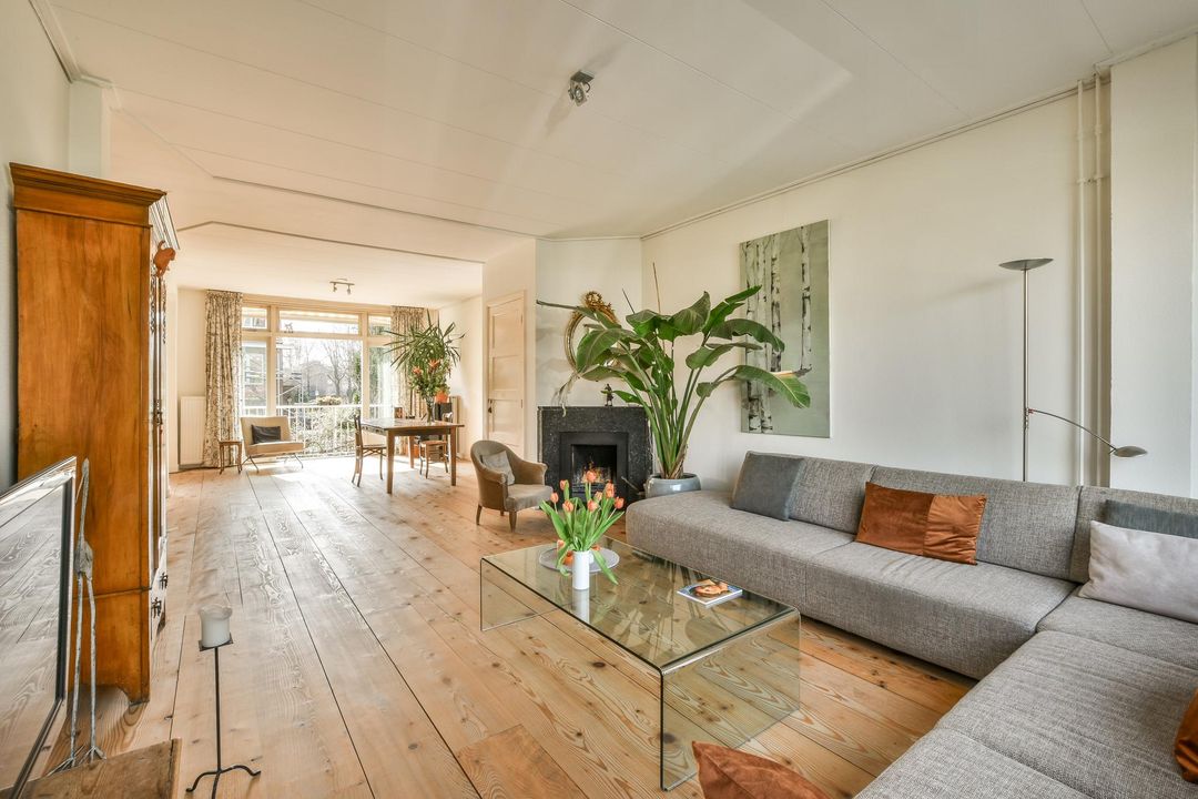 – Brede houten vloerdelen op de woonverdieping;