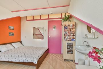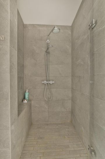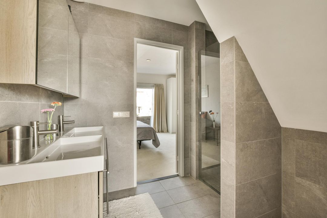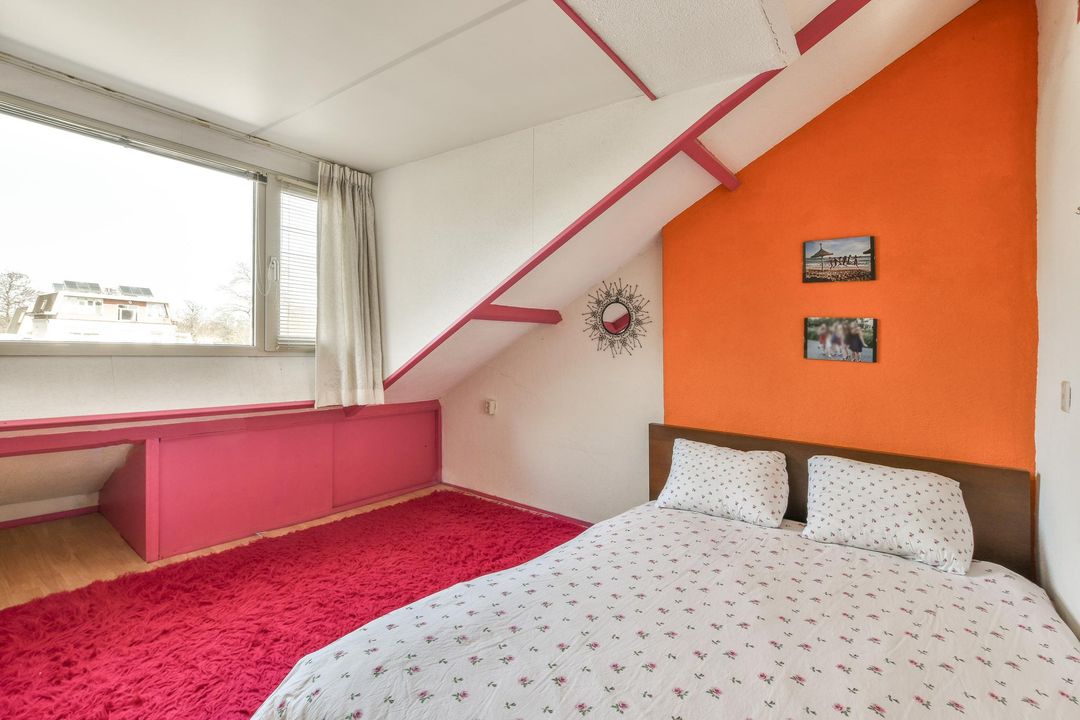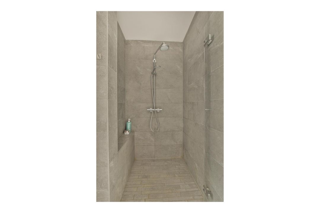 Door with stairs to the 2nd floor: landing with a dormer window and shower, spacious bedroom at the front with a dormer window and sink. Door to spacious attic with the CV installation and a Velux skylight.