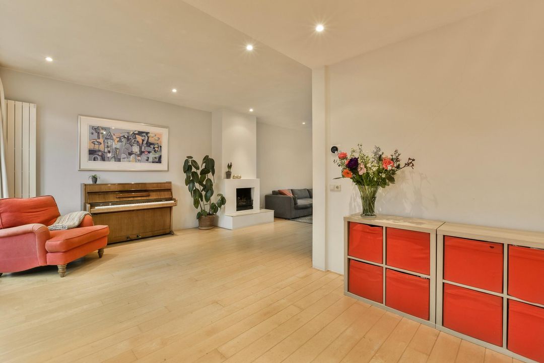 Begane grond: entree met garderobe, meterkast en vergroot toilet, trap naar eerste verdieping, deur naar keuken (voorzijde), ruime L- vormige woonkamer met open haard, openslaande deuren naar de tuin. Lichte moderne woonkeuken met vloerverwarming voorzien van inbouwapparatuur en donkergekleurd aanrechtblad. De doorzon keuken heeft een toegang direct vanaf de voor- én achtertuin De woonkamer biedt voldoende ruimte voor een grote eettafel om met gezelschappen te kunnen borrelen en dineren. Vanuit dit woonkamer zijn er openslaande deuren naar de de zonnige achtertuin op het noordwesten. Via de tuin kunt u langs de woning lopen. De tuin is voorzien van een grote berging en een achterom.