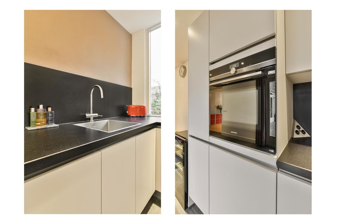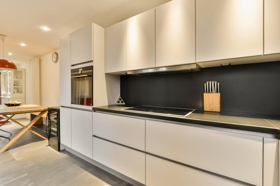 – Moderne woonkeuken met inductie kookplaat, afzuigkap en vaatwasser;