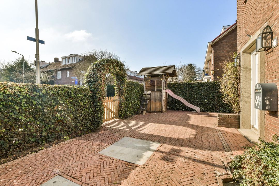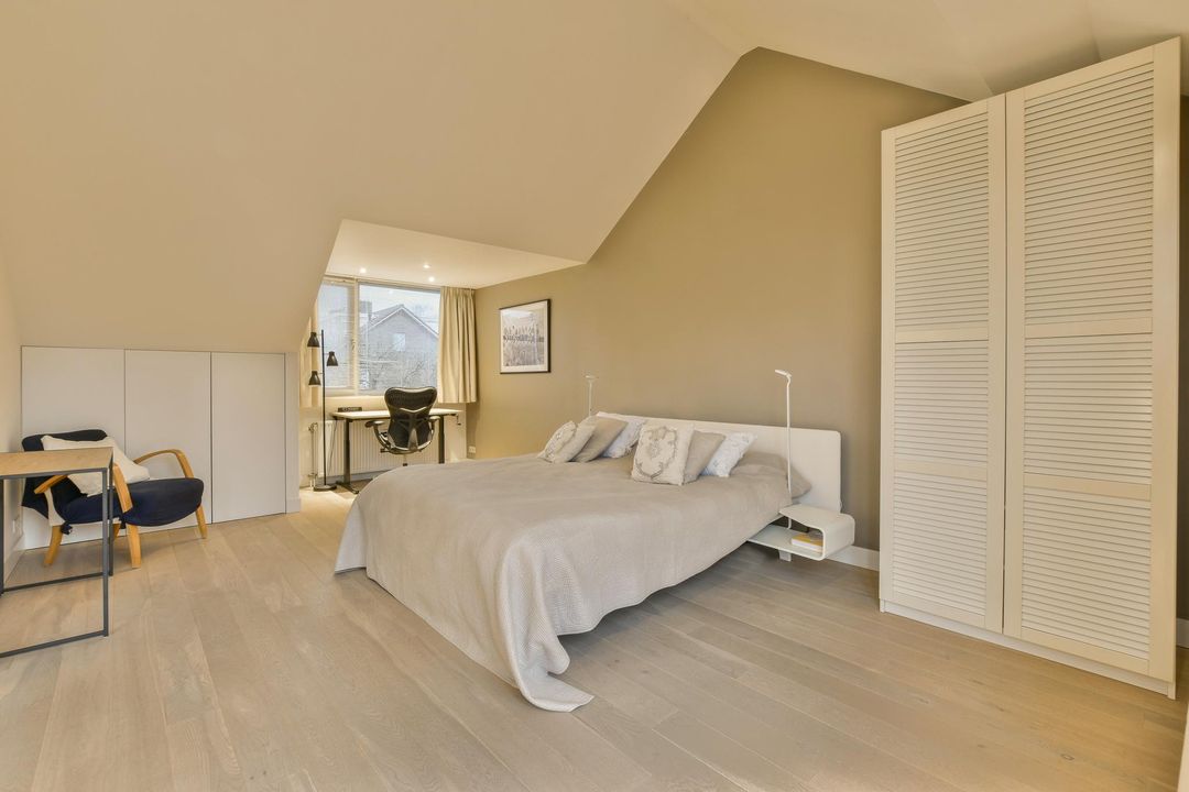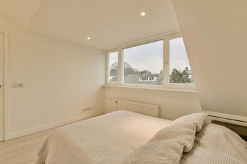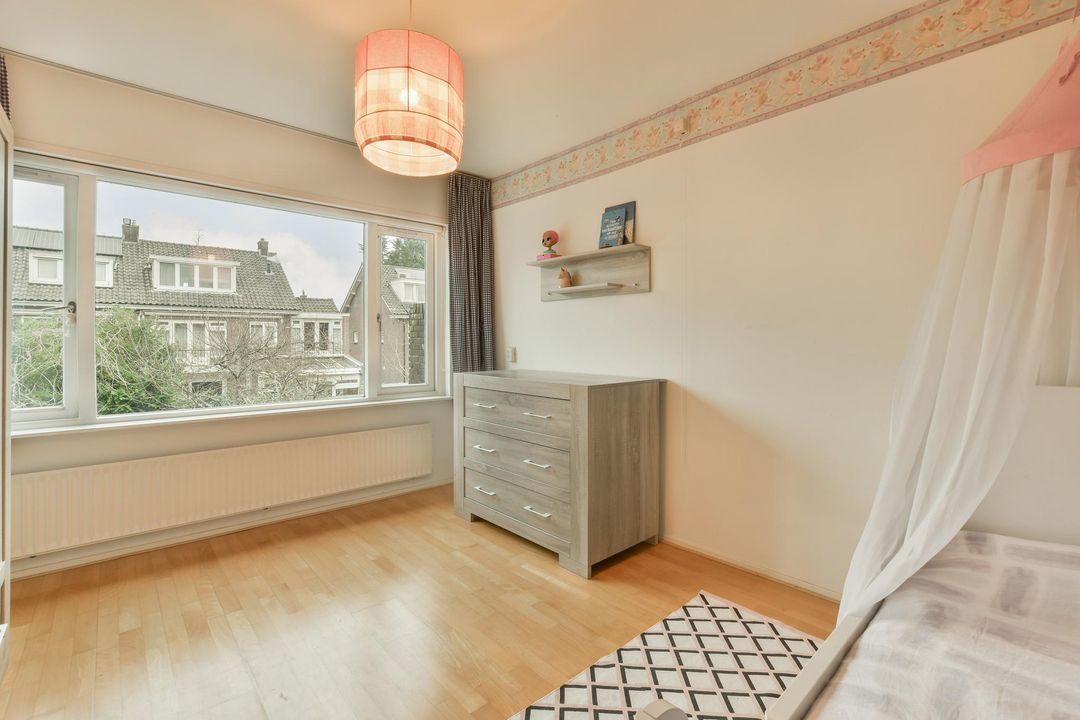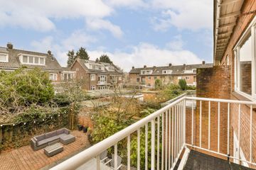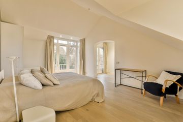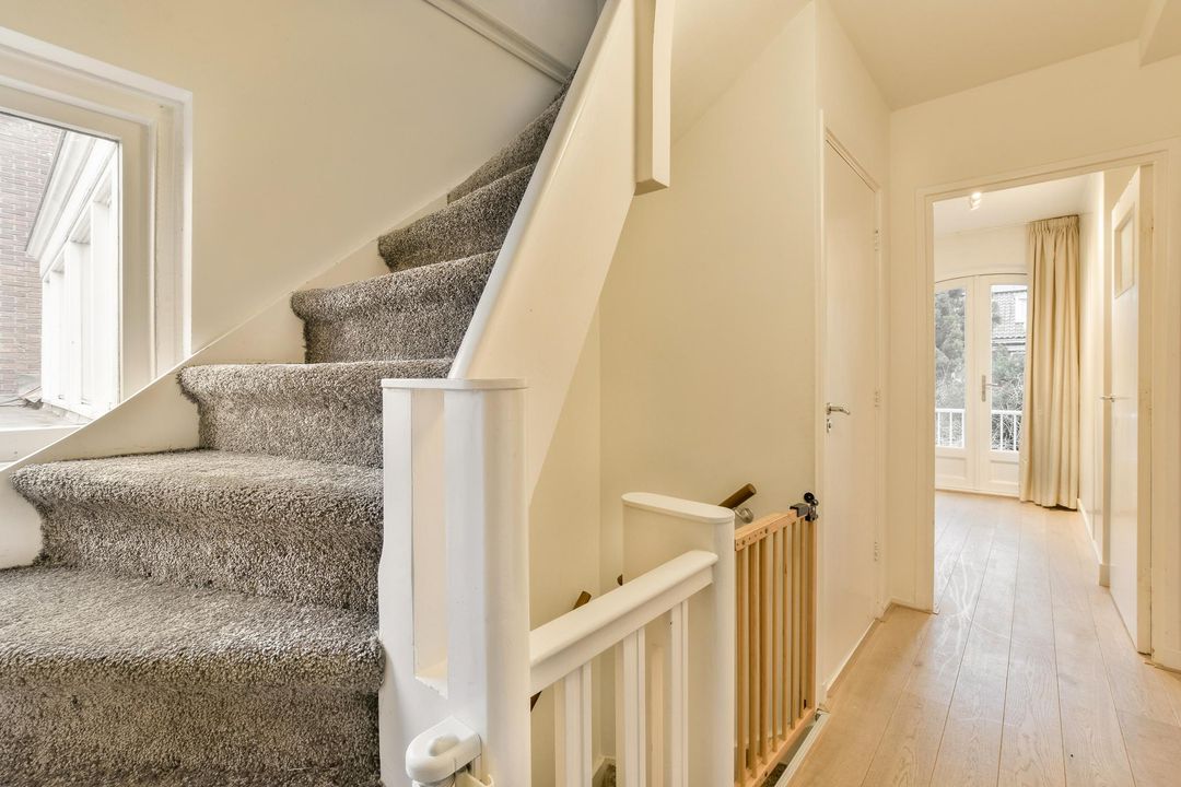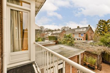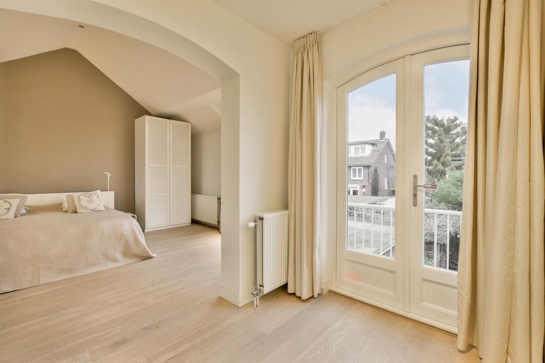 Eerste verdieping: overloop met toegang tot alle vertrekken. Drie ruime slaapkamers aan zowel de voor- als achterzijde van de woning, badkamer aan de voorzijde. De zéér ruime speelse hoofdslaapkamer heeft hoge plafonds, een dakkapel aan de voorzijde en een ruime kleedkamer (voormalige slaapkamer met frans balkon) en openslaande deuren naar het balkon met uitzicht op de tuin, voorts een ruime bergruimte. De badkamer is voorzien van een ligbad, wastafelmeubel, handdoekradiator, een separaat toilet op de overloop.