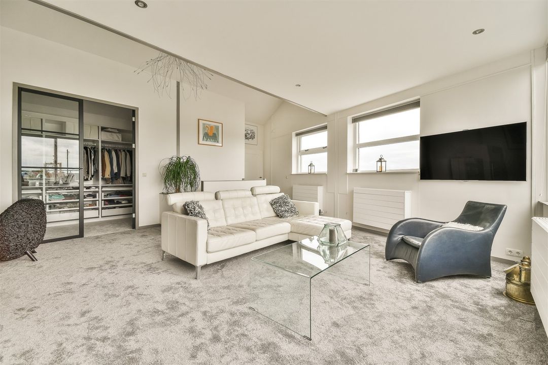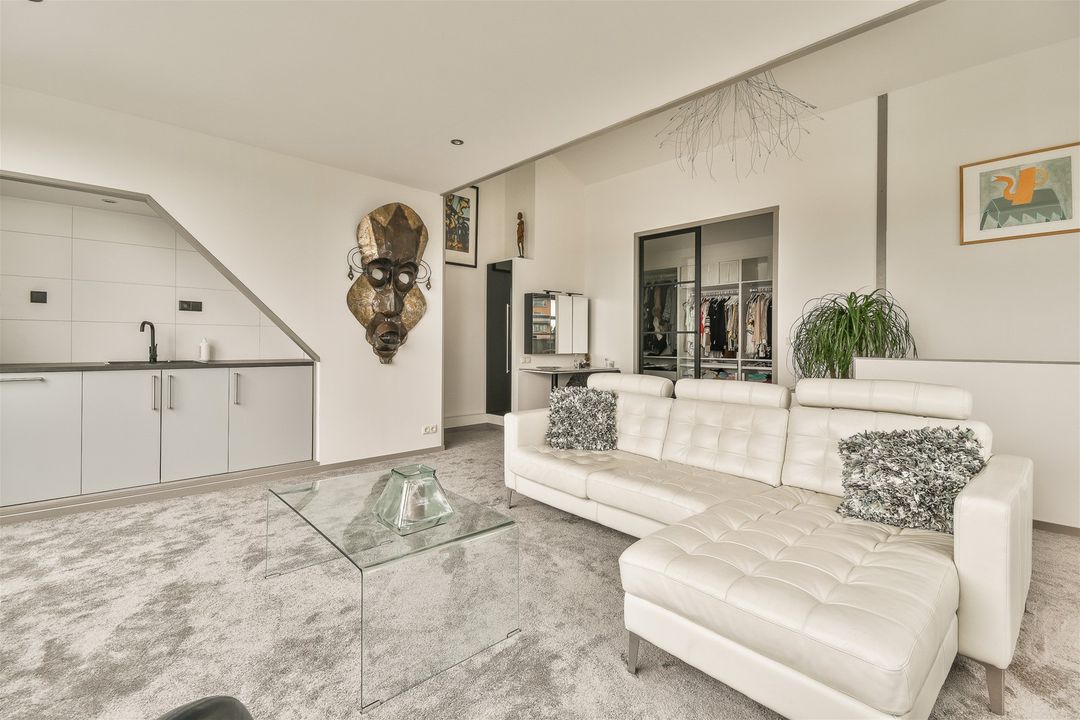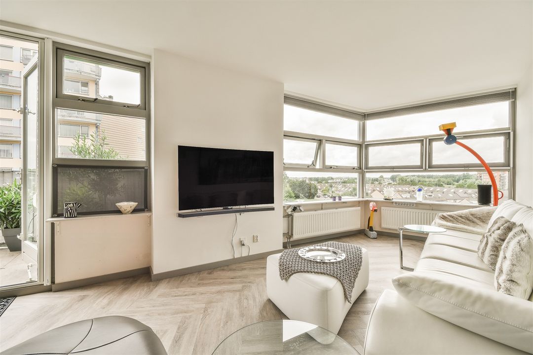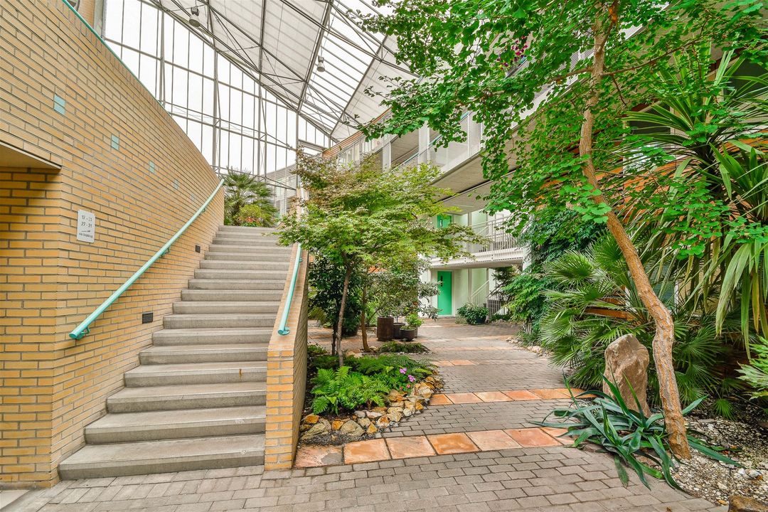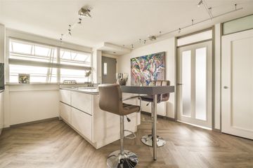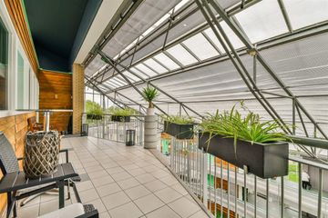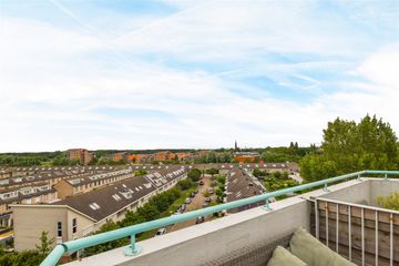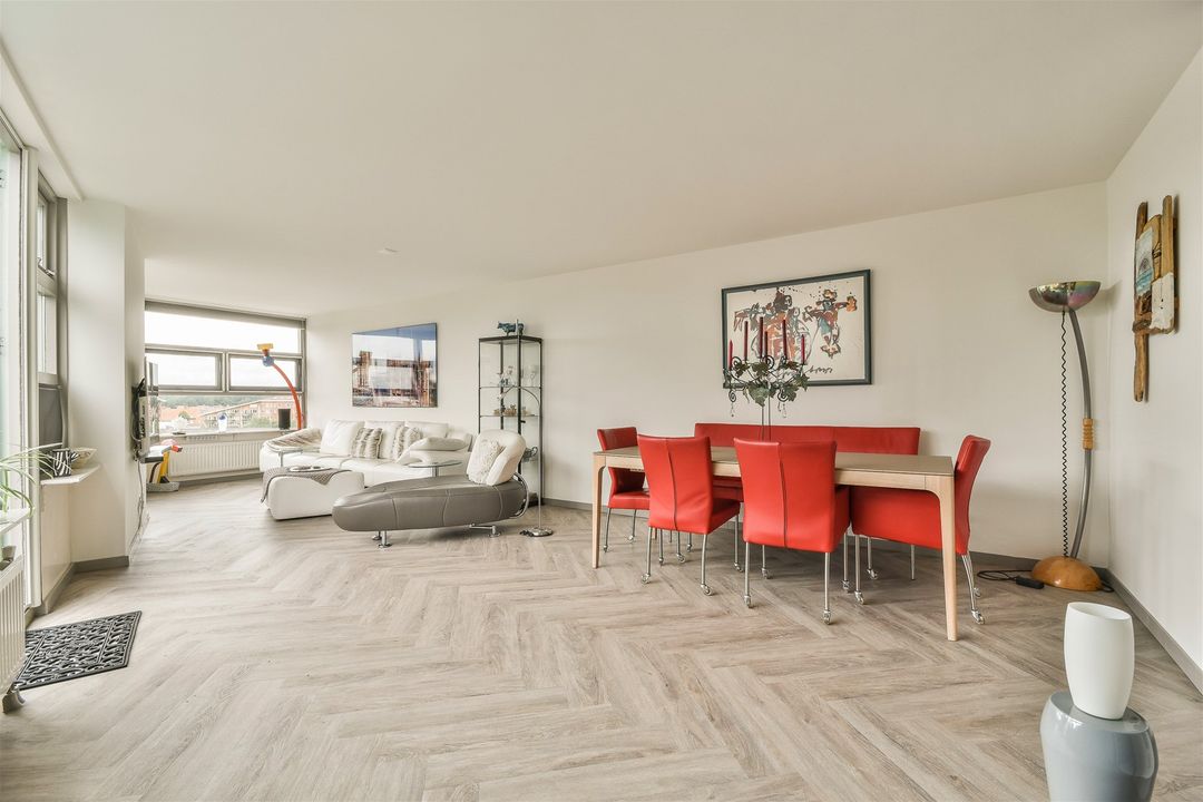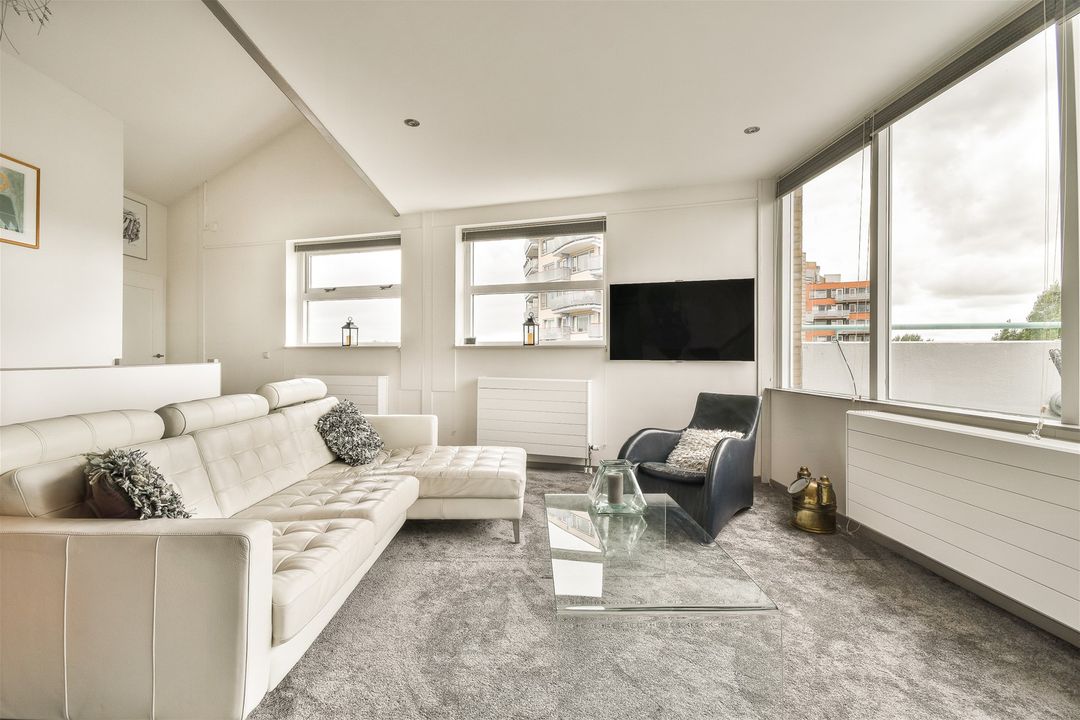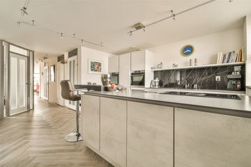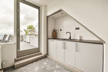 Located in the popular area “Amstelveen Westwijk” near Bovenkerk, we can offer this beautiful recently completely renovated (renovation year 2020/2021) 5-room penthouse with a balcony, spacious roof terrace, private garage and fantastic unobstructed view over Amstelveen, the Amsterdamse Bos, Bovenkerk with the beautiful Urbanuskerk and the Amsterdam Zuidas! The apartment is on the 5th and 6th floor and has a playful layout, which shows the special appearance and construction of the complex. The complex has a special and beautiful atrium with various plants. In the basement is the garage with electric door (mandatory takeover garage of € 35,000).