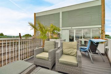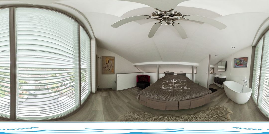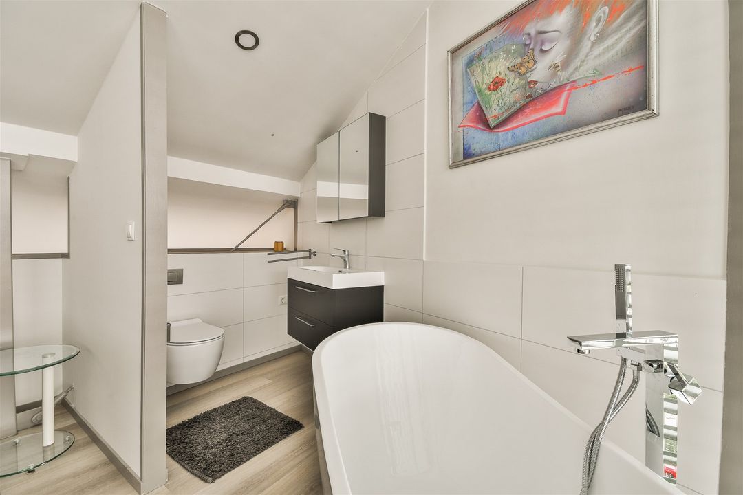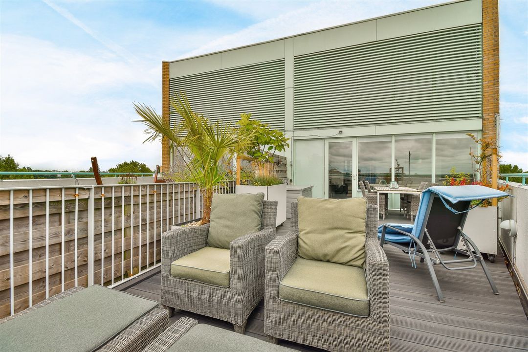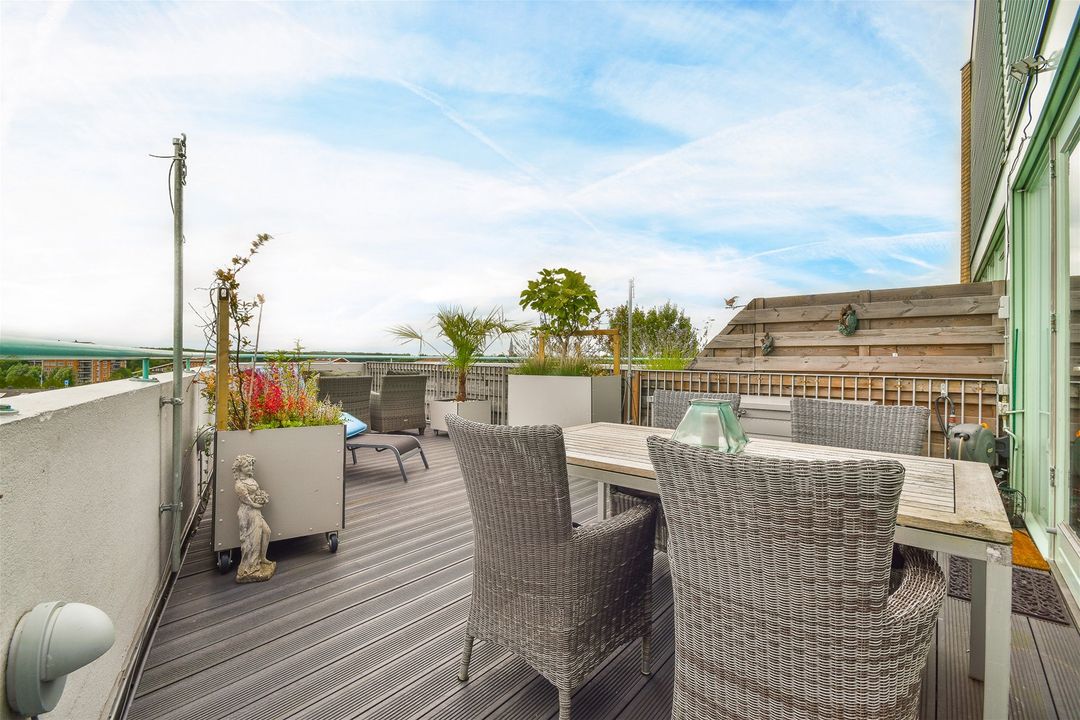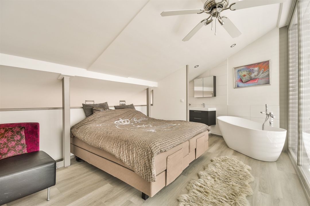 De interne trap geeft toegang naar de bovengelegen ruimte welke thans in gebruik is als loft (thans in gebruik als 2e woonkamer, maar ook geschikt als thuiswerklocatie) met aangrenzend een royaal dakterras met fraai uitzicht. Daarnaast beschikt deze verdieping over een eigen kitchenette welke is voorzien van een spoelbak, koelkast en vaatwasser en een royale berging en grote kleedkamer. Middels een vaste trap is de vide toegankelijk waar zich de 3e slaapkamer bevindt met badkamer en-suite, bestaande uit een royaal ligbad alsmede een wastafelmeubel met spiegel, toilet en een schitterend uitzicht.