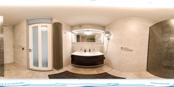 – Luxe badkamer voorzien van een inloopdouche en dubbele wastafel;