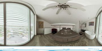 The internal staircase gives access to the loft above (currently used as a 2nd living room, but also suitable as a home office location) with an adjacent spacious roof terrace with beautiful views. In addition, this floor has its own kitchenette which is equipped with a sink, refrigerator and dishwasher and a spacious storage room and large dressing room. The loft is accessible via a staircase where the 3rd bedroom is located with en-suite bathroom, consisting of a spacious bath and a washbasin with mirror, toilet and a magnificent view.