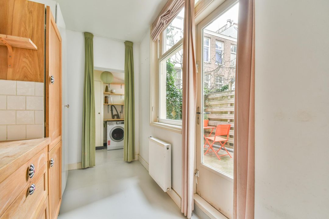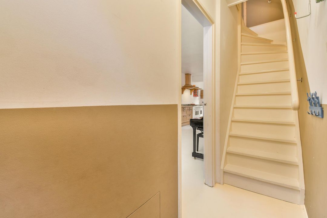 Through the private entrance from the street you enter the hallway, corridor with wardrobe and staircase to the second floor. The bright living room with two closets, provides adequate space for a nice sitting area. The spacious kitchen is located at the rear with access to the garden. The kitchen is equipped with various appliances, including a beautiful robust Boretti 6 burner stove with two ovens, grill, fridge with freezer drawers, dishwasher and an extractor. From the open kitchen through double doors the very nice secluded garden is accessible, also with a handy storage cupboard. Behind the kitchen is the toilet. In addition, there is a handy storage cupboard created for the washer / dryer. The heating system is in a separate cabinet.