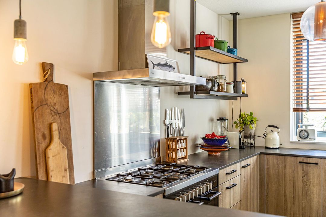 – Moderne keuken met inbouwapparatuur: 6 pits gasfornuis met oven (Pelgrim), RVS achterwand en afzuigkap, half ingebouwde koelkast, vaatwasser (Siemens);
