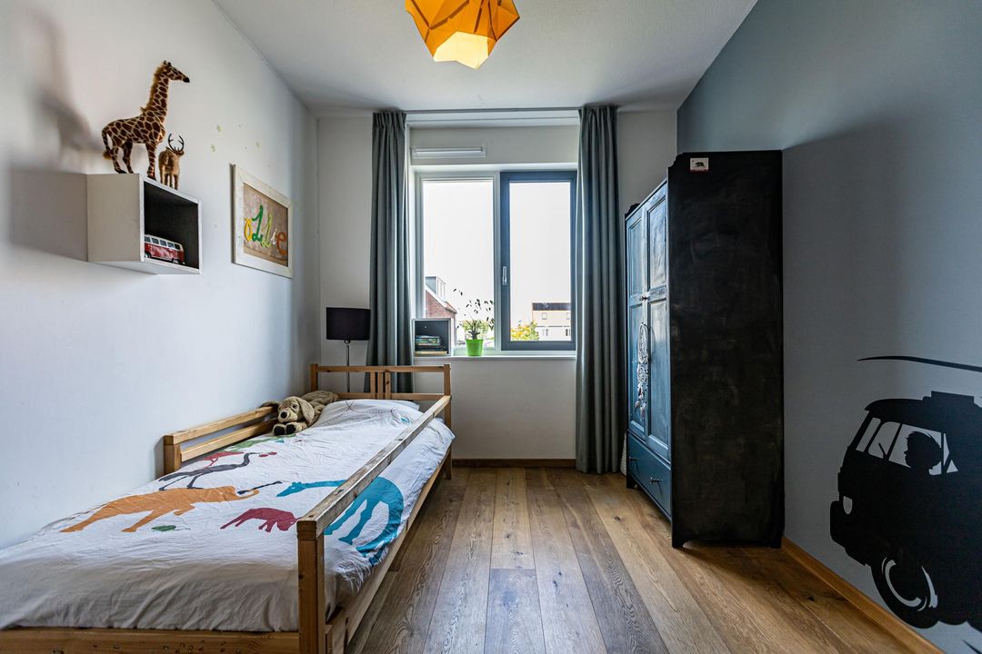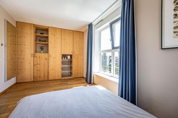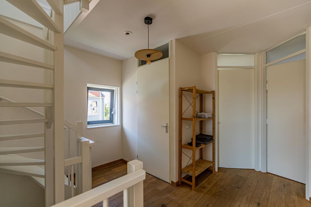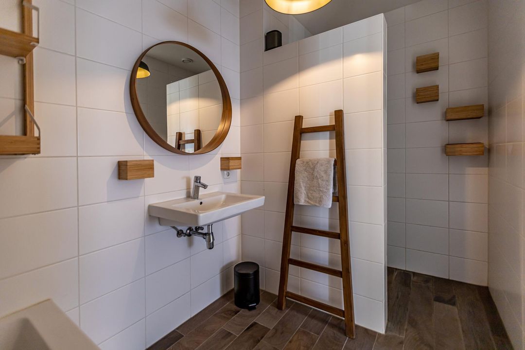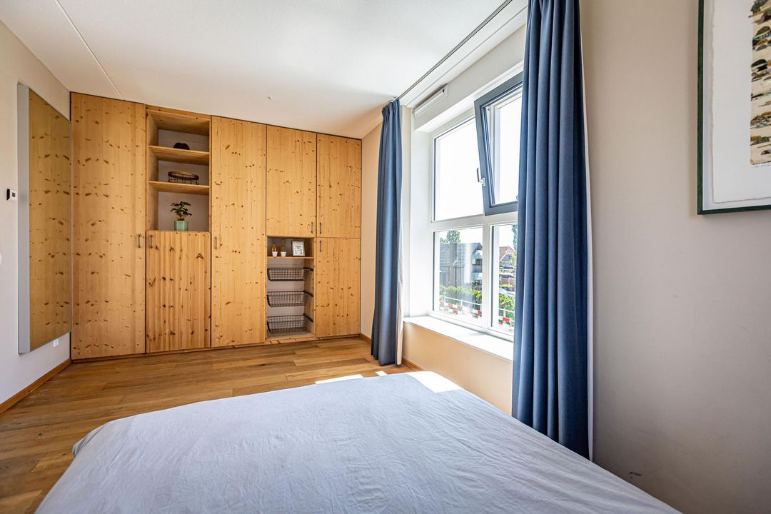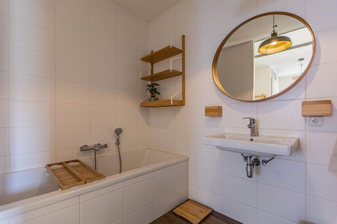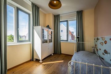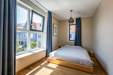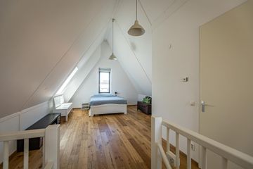 Second floor; spacious landing with separate 2nd toilet and access to all bedrooms: 2 located at the rear and 1 over the entire width of the house at the front with high playful windows for extra natural light. Modern spacious bathroom with a bathtub with hand shower, walk-in shower, sink and underfloor heating.