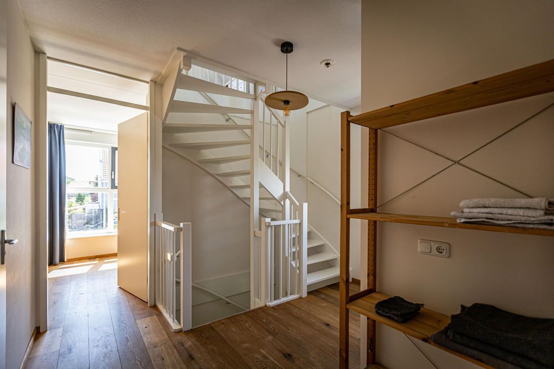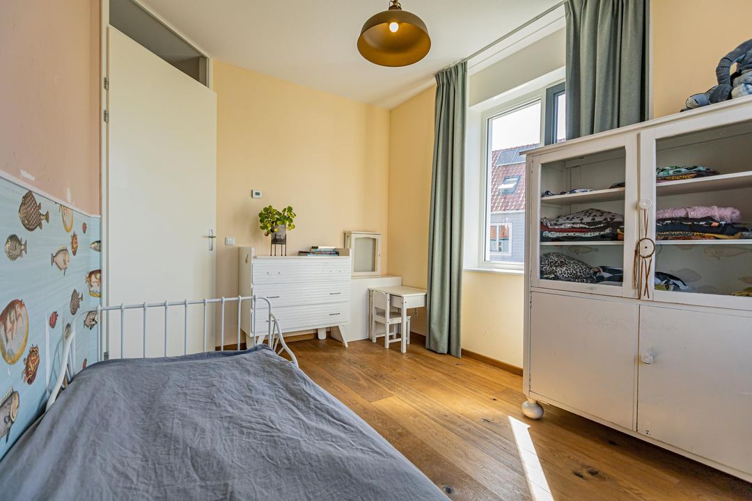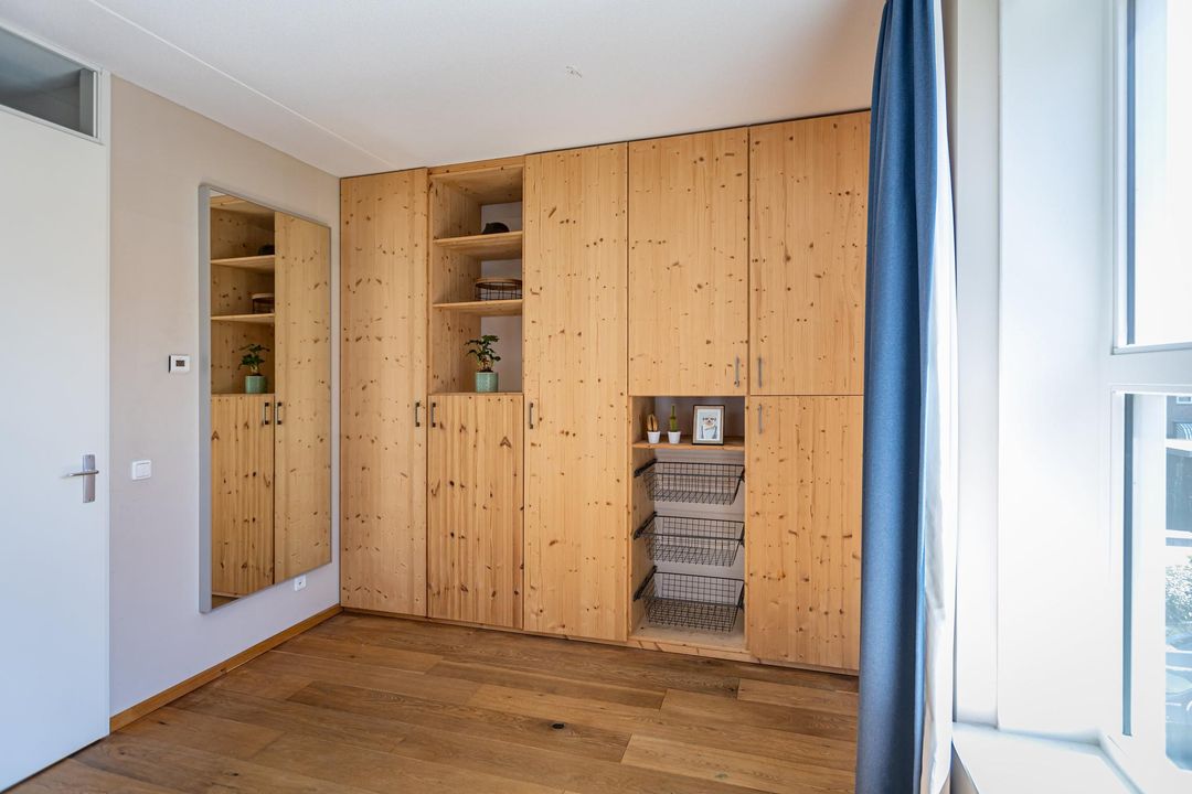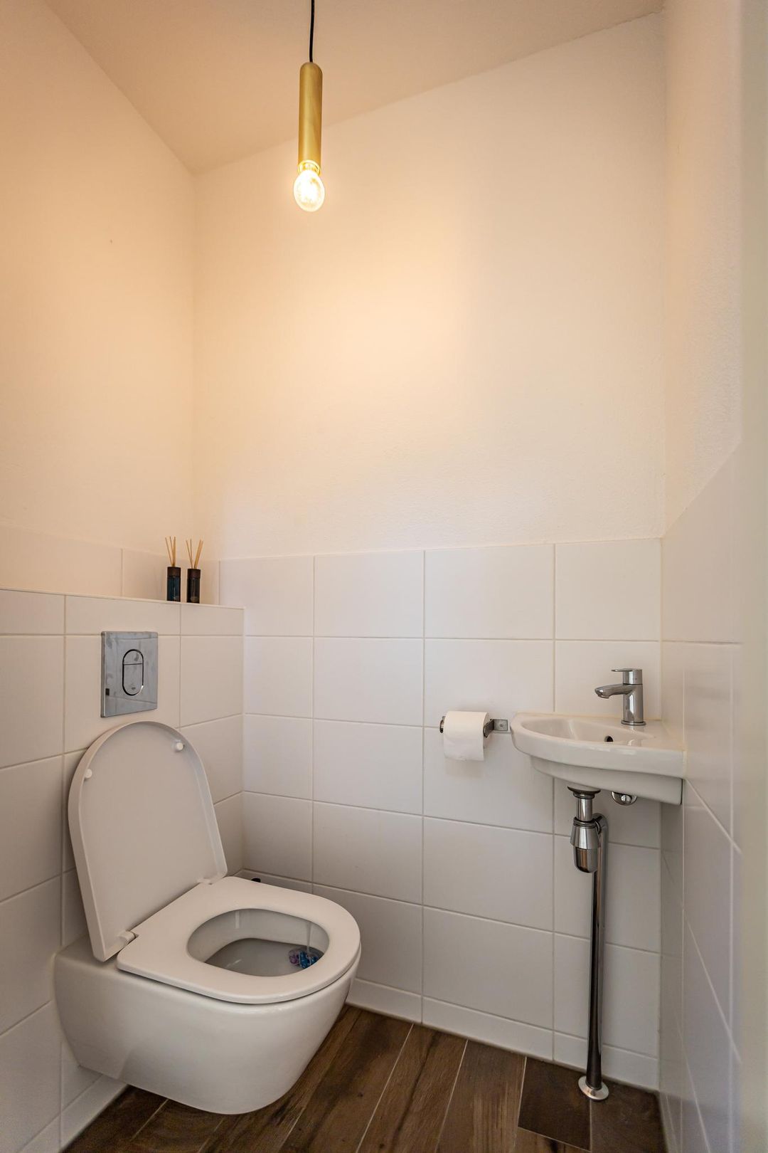 Second floor; spacious landing with separate 2nd toilet and access to all bedrooms: 2 located at the rear and 1 over the entire width of the house at the front with high playful windows for extra natural light. Modern spacious bathroom with a bathtub with hand shower, walk-in shower, sink and underfloor heating.