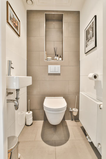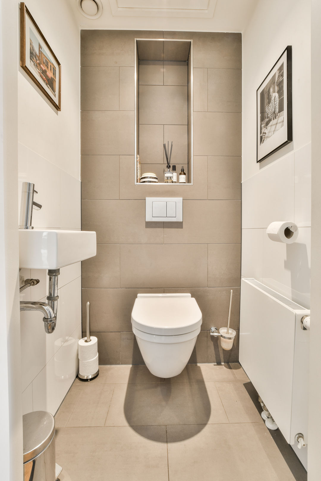 Entrance through private front door, vestibule with draft door, hallway with meter cupboard, wardrobe and separate toilet. The hall provides access to the bedroom and bathroom. The modern bathroom has a spacious bathtub, shower, washbasin. Bathroom fully finished with large floor and wall tiles. Between bath and bedroom is a closet with connections for washer and dryer.