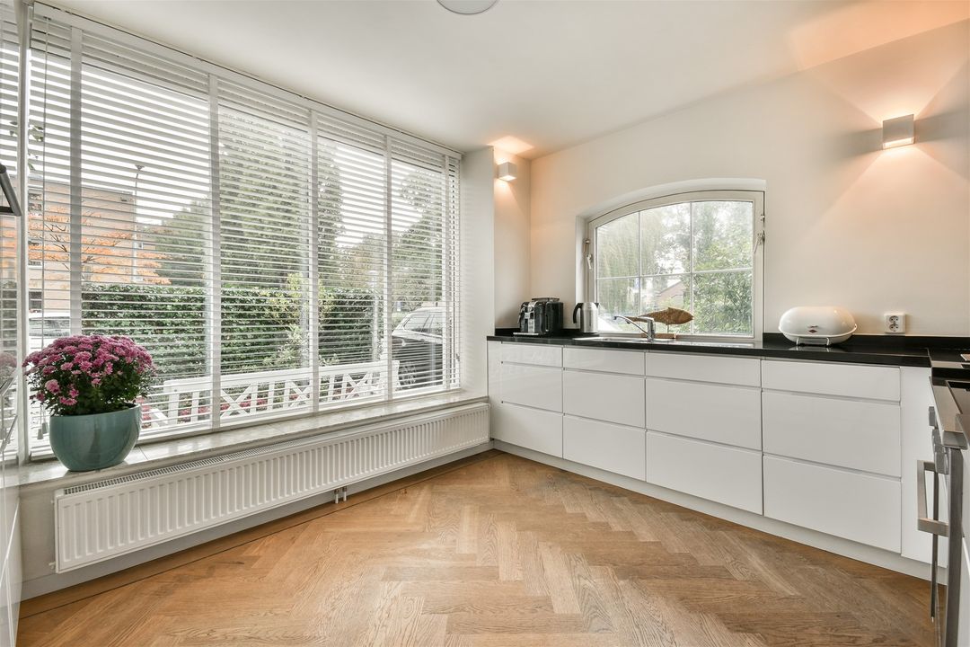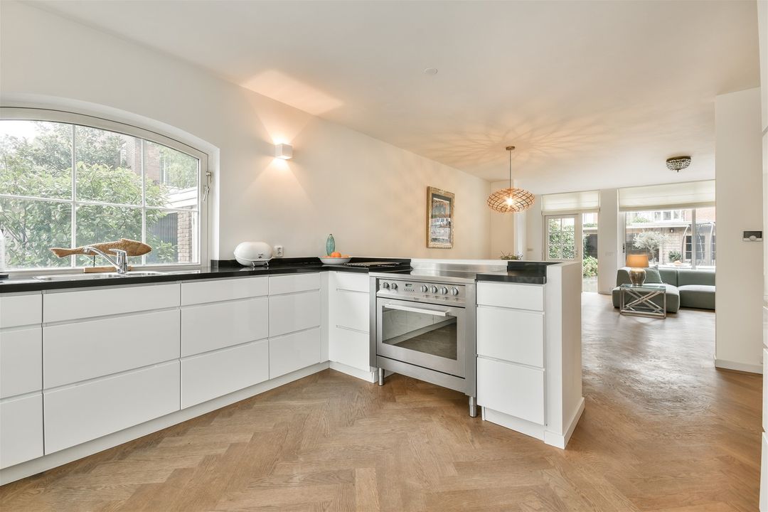 – Luxe, moderne open keuken (2016) voorzien van diverse inbouwapparatuur waaronder een keramisch fornuis met hetelucht oven, combi-magnetron, koelkast met 3 ladevriezer en een vaatwasser;