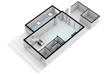 – Garage omgebouwd tot speel-/werkkamer met 2 dakkoepels en witte houten vloer;