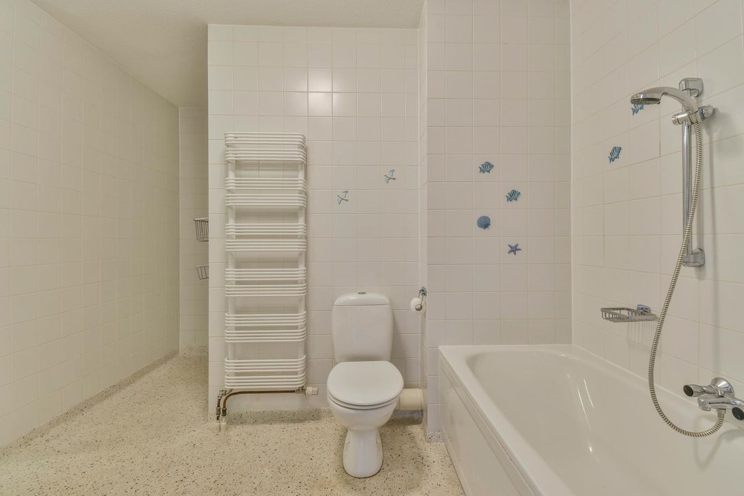 Entrance of the flat with access to the various rooms. On the left is a spacious and practical storage room with the connection for the washing machine. Separate toilet with fountain. On the west side of the flat is the spacious living room situated with access to the balcony (west). The semi-open kitchen is accessible from the living room. The spacious kitchen has a breakfast bar and various appliances: refrigerator, oven, induction hob, extractor and dishwasher. At the front of the flat are two very spacious bedrooms. The generously sized bathroom has a walk-in shower, washbasin with double sink and a toilet.