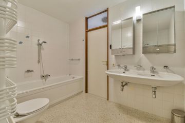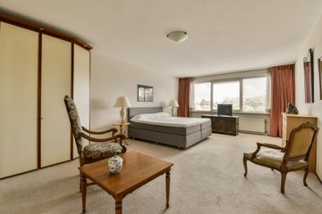 The “Oakpark” complex (1991) is located in the popular neighbourhood Keizer Karelpark on the quiet, spacious Kastanjelaan with beautiful gardens in front of the door and at the rear (terrace side) overlooking a generous piece of nature, surrounded by the trees of the Handweg. For your orientation: just behind it is De Poel. Here you can start a beautiful walk; a “Rondje Poel”. A beautiful area, with lovely views, bordering on the Amsterdamse Bos. The Michelin star restaurant “Aan de Poel” is also very close. From the flat you can walk to the Old Village of Amstelveen in less than five minutes. Within ten minutes you are at the nearest supermarket or in the Stadshart (one of the larger luxury indoor shopping centres in the Netherlands with its diversity of shops, cinema, restaurants, theatre, library, Cobra Museum and weekly market).
