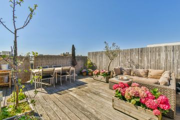 The roof terrace is provided with a spacious roof extension with pantry with water connection and fridge. So you never have to walk downstairs for a cold drink. The roof terrace is very sunny and spacious, besides that it offers a fantastic view over the city!