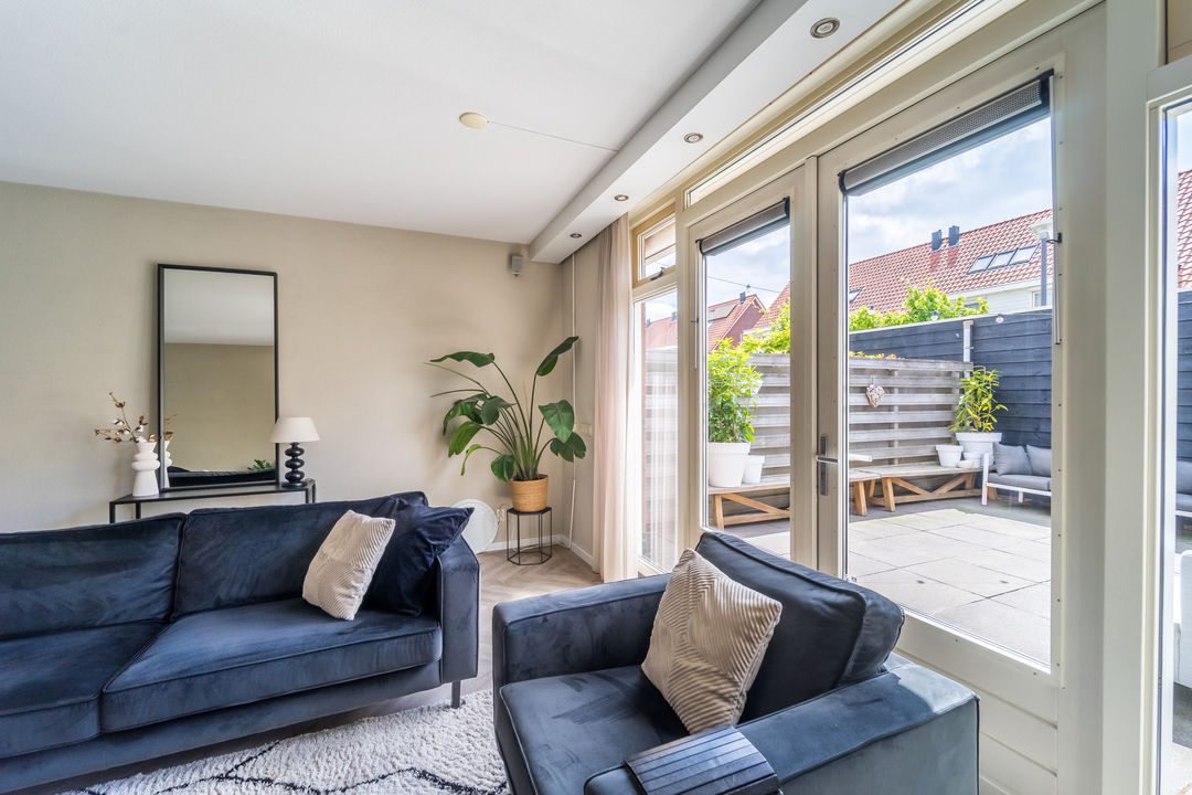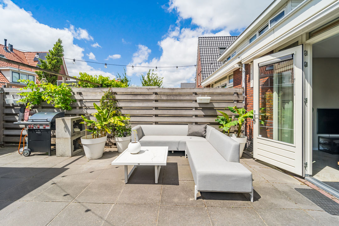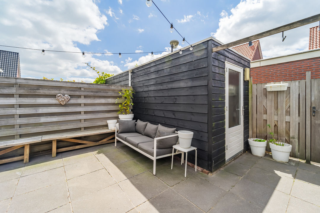 Through the double doors from the living room you can step into the spacious 8 meters deep garden. The backyard is located on the southwest where you can enjoy the sun almost all day. In the garden is a detached stone shed with electricity and a back.
