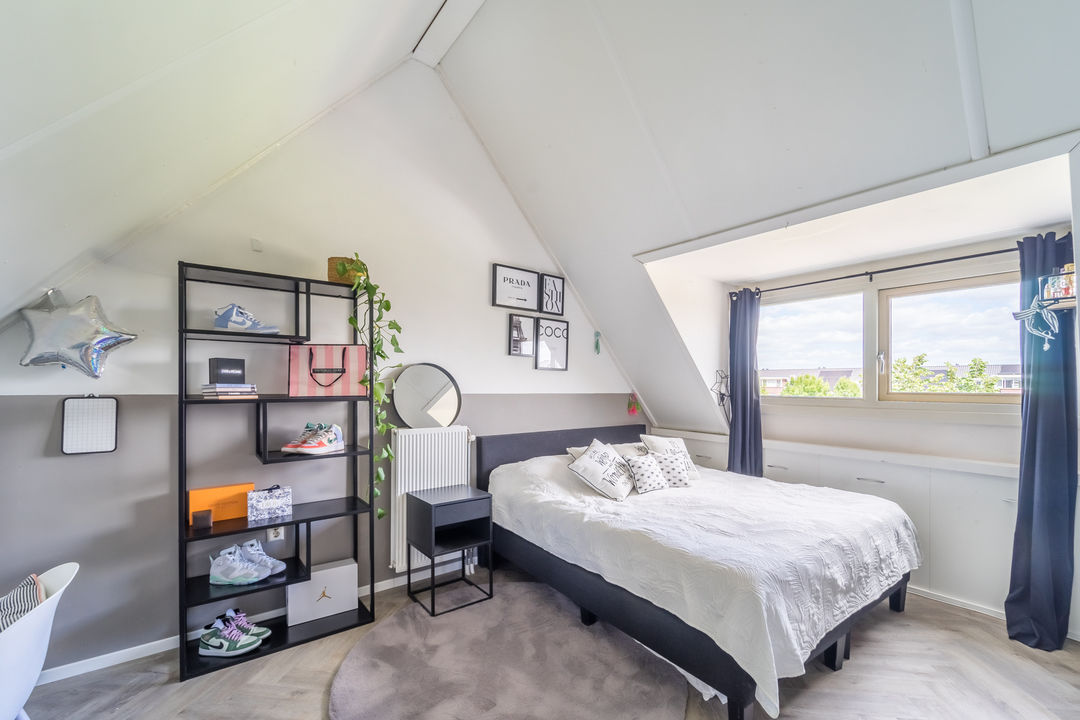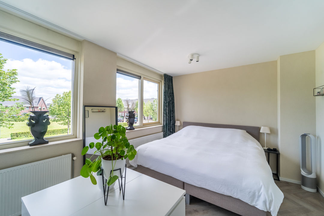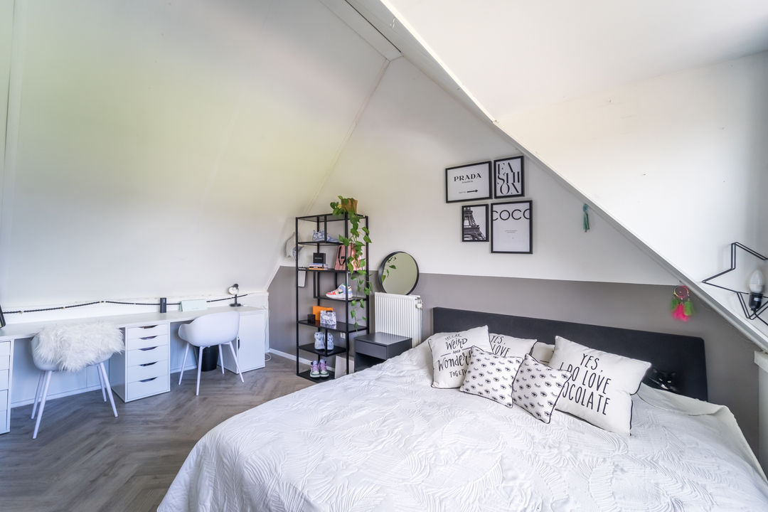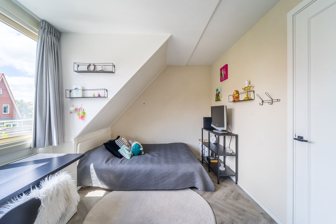 Eerste verdieping: Overloop en twee ruime slaapkamers. De slaapkamer aan de achterzijde heeft een dakkapel. De slaapkamer aan de voorzijde (voorheen 2 kamer) is gelegen over de gehele breedte van het huis en voorzien van een L-vormige kastenwand. De moderne badkamer is voorzien van een ligbad, een 2e toilet en een wastafelmeubel.