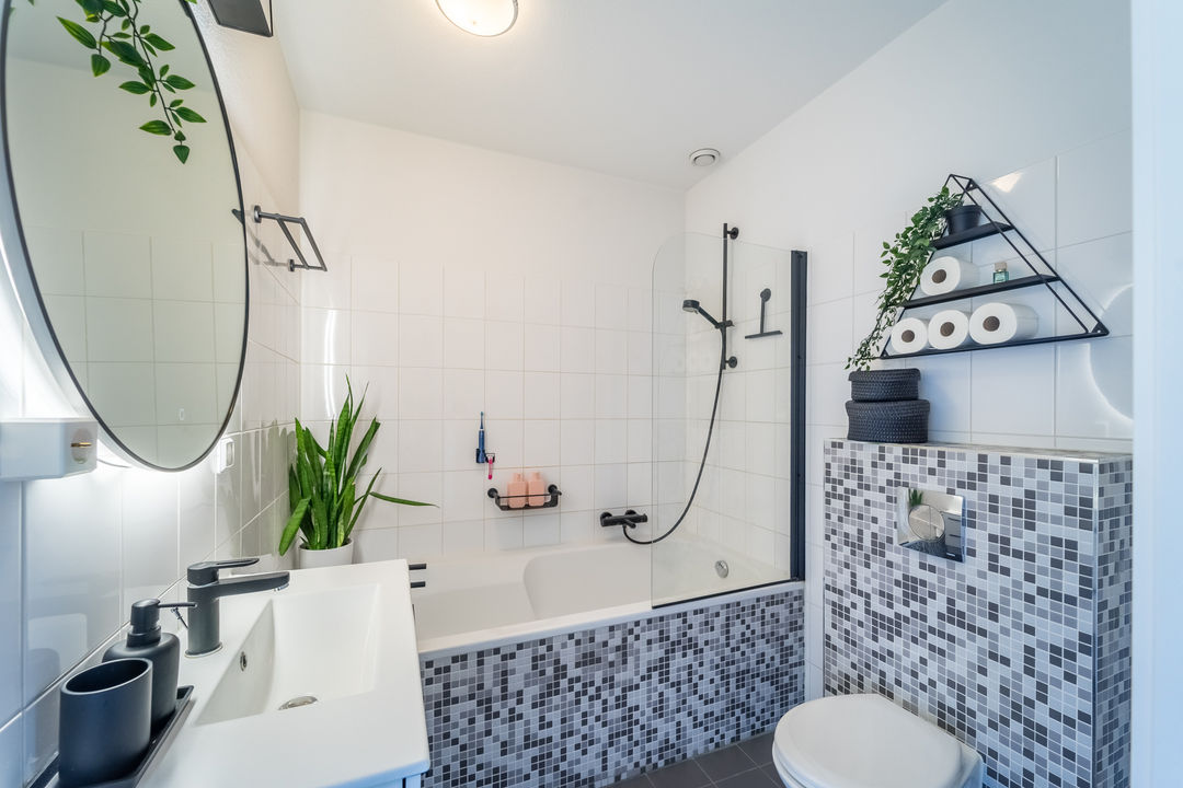 – Modern high gloss kitchen with 5-burner stove with hood, a recently renewed dishwasher, fridge-freezer and combination oven;