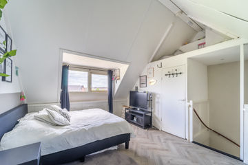 Tweede verdieping: Ruime open slaapkamer met een dakkapel aan de voorzijde. Het is mogelijk om eenvoudig een extra slaapkamer te realiseren. Ruime kast met de wasmachine/droger aansluiting en cv-opstelling.