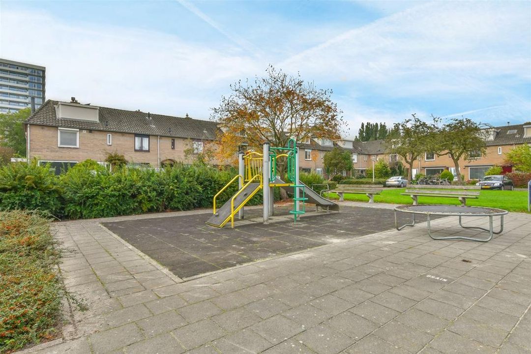 Natuur- en recreatiegebied Amstelland, met prachtige fiets en wandelpaden door riet- en weiland en langs de Amstel. In een paar minuten lopen bent u in de natuur en de rust van de Middelpolder, die uiteindelijk uitmondt in de rivier de Amstel. Vanuit de tuin kunt u de grutto’s en ganzen horen en zien overvliegen. Dit alles op steenworp afstand van Amsterdam. Ook op loopafstand zijn scholen en het overdekte winkelcentrum ‘Het Kostverlorenhof’ enerzijds en ‘Bankrashof’ anderzijds, alwaar een keur aan winkels te vinden is waaronder een Albert Heijn en Dirk van den Broek, en ook verschillende speciaalzaken en plezierige restaurants. Het Groot Gelderlandplein en het Stadshart met Cultureel Centrum Amstelveen, alsmede de uitvalsweg A9 met verbinding naar de A10 (de ring rondom Amsterdam) en de Schiphollijn zijn op zeer korte afstand bereikbaar. Parkeren is in dit deel van Amstelveen vrij en zonder vergunning. De woning ligt binnen loopafstand van het openbaar vervoer met de vernieuwde halte Onderuit en de nieuwe ondergrondse halte Zonnestein voor de tram 5 en metro 25. het tegenovergelegen grasveld met zijn vele groen is in de rustige straat een ware uitkomst voor spelende kinderen.