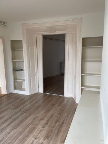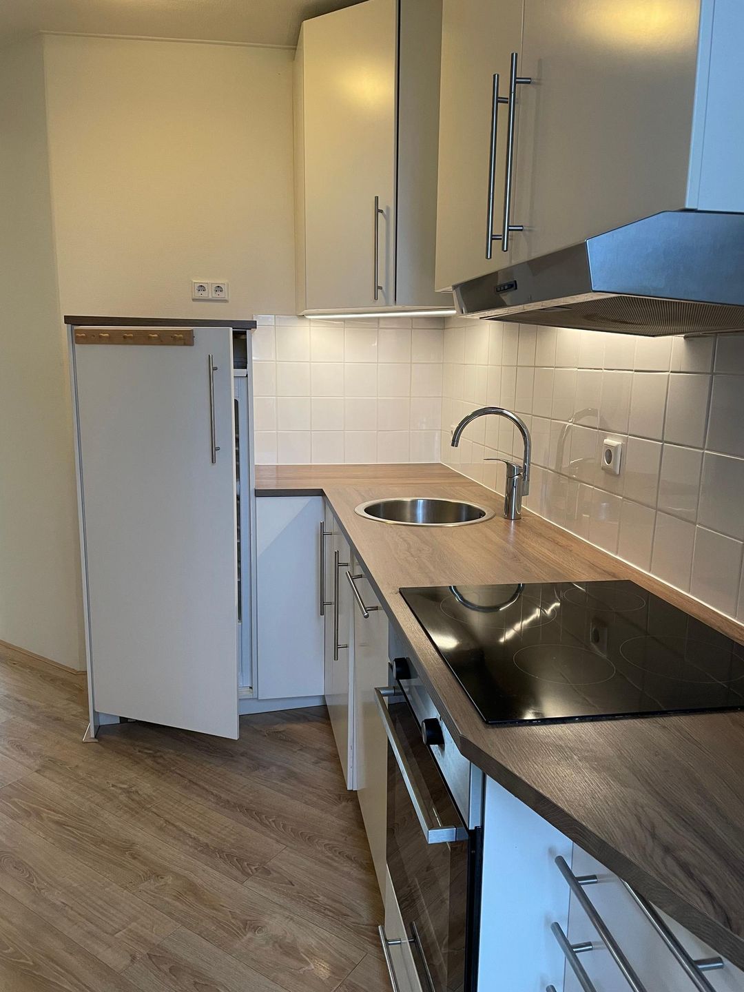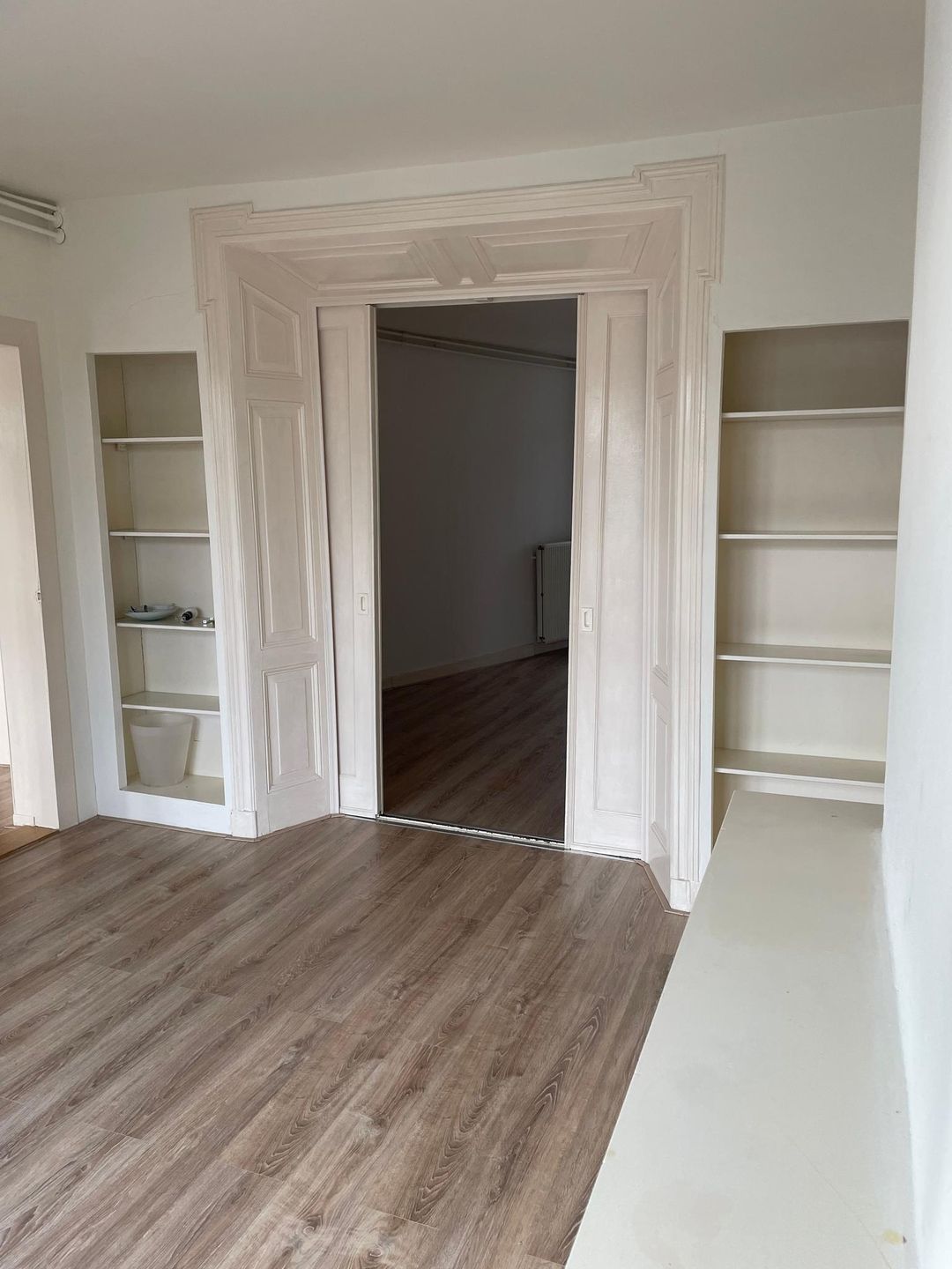 Entrance apartment on the 3rd floor. Hallway with access to all rooms. Spacious and bright living room with large windows is located on the front of the apartment. The living room also has a side room with built in cupboards which is ideal as a home office. Furthermore, the apartment has 2 spacious bedrooms, which are located at the front and rear of the apartment. The functional kitchen is located at the rear and is equipped with a induction hob, fridge and sink. Furthermore, there is access to the balcony from the kitchen as well as from the 2nd bedroom. The bathroom is accessible from the hall and has a shower, sink, toilet and washing machine connection.