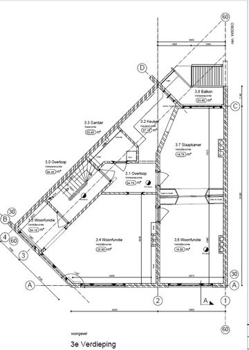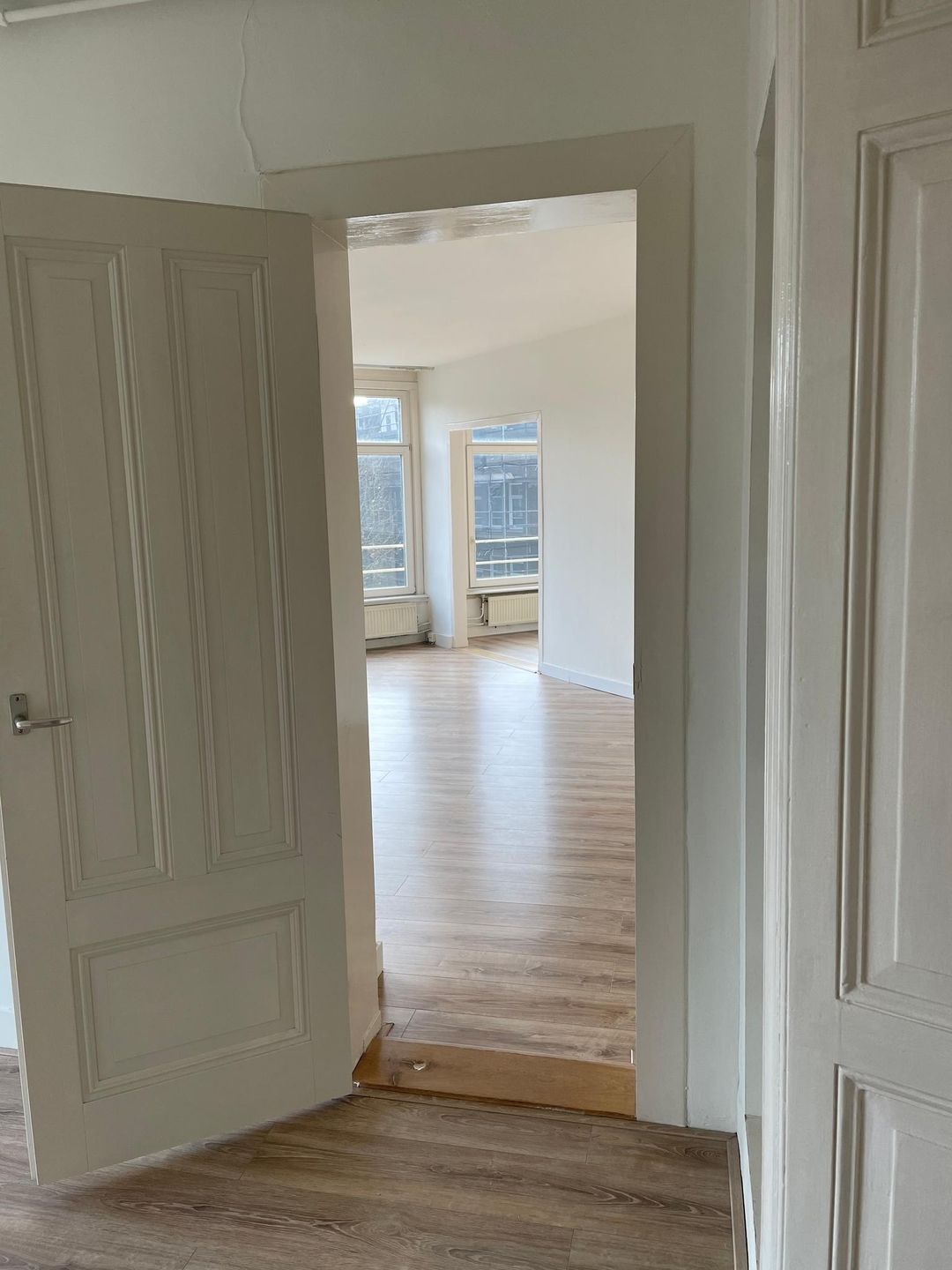 Entree appartement op de 3e verdieping. Hal met toegang tot alle vertrekken. Royale en lichte woonkamer met grote raampartijen is gelegen aan de voorzijde van het appartement. De woonkamer beschikt daarnaast over een zijkamer met inbouwkasten welke uitstekend geschikt is als thuiswerkplek. Verder beschikt het appartement over 2 ruime slaapkamers, gesitueerd aan de voor- en achterzijde van het appartement. De functionele keuken bevindt zich aan de achterzijde en is voorzien van een inductie kookplaat, koelkast en wasbak. Verder is er vanuit de keuken als de 2e slaapkamer toegang tot het balkon. De badkamer is vanuit de hal toegankelijk en beschikt over een douche, wastafel, toilet en wasmachine aansluiting.