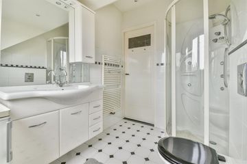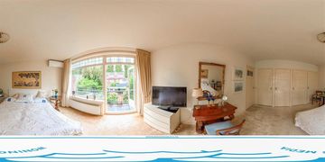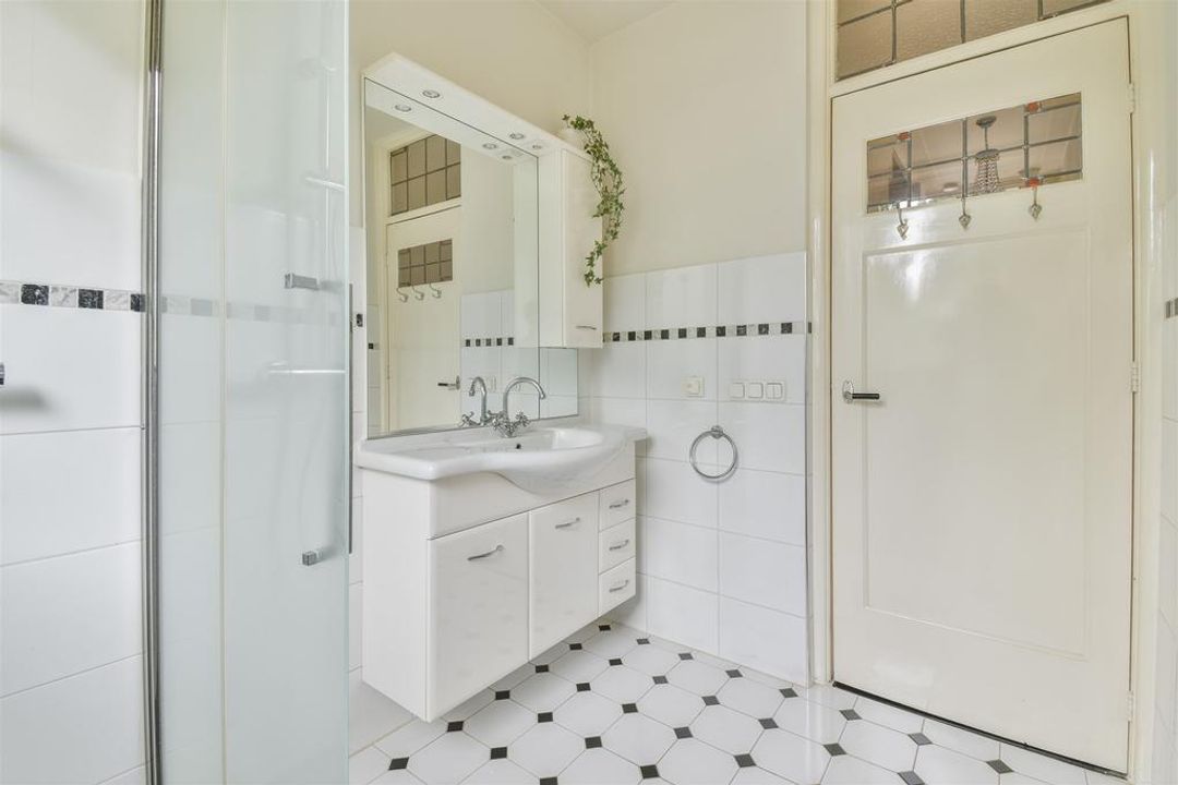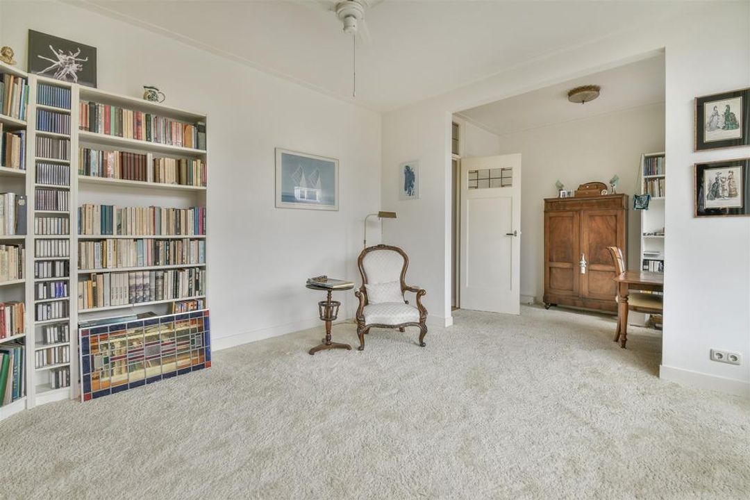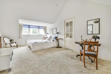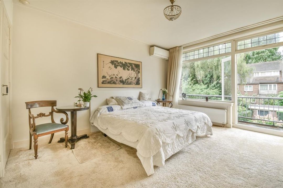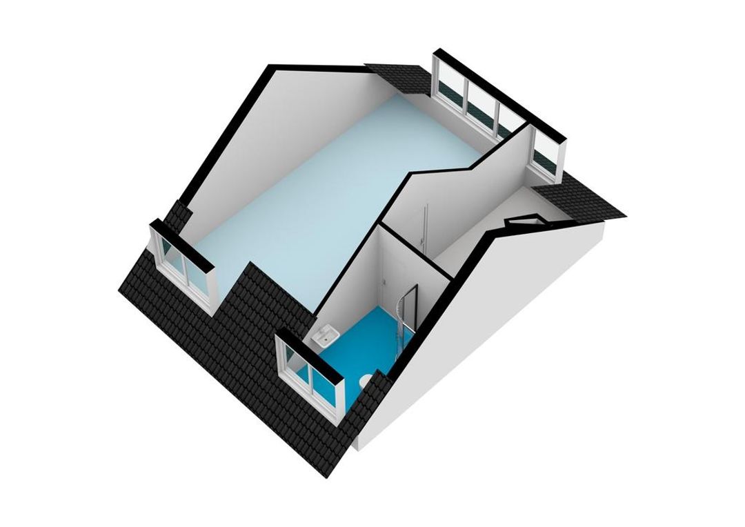 Tweede verdieping: Overloop met bergruimte, wasmachine- en droger en kast met cv-installatie. Ruime slaapkamer met aan weerszijde een dakkapel en een sfeervol hoog plafond. Deze verdieping beschikt tevens over airconditioning en een eigen badkamer voorzien van een douche, handdoekradiator, wastafelmeubel en toilet.