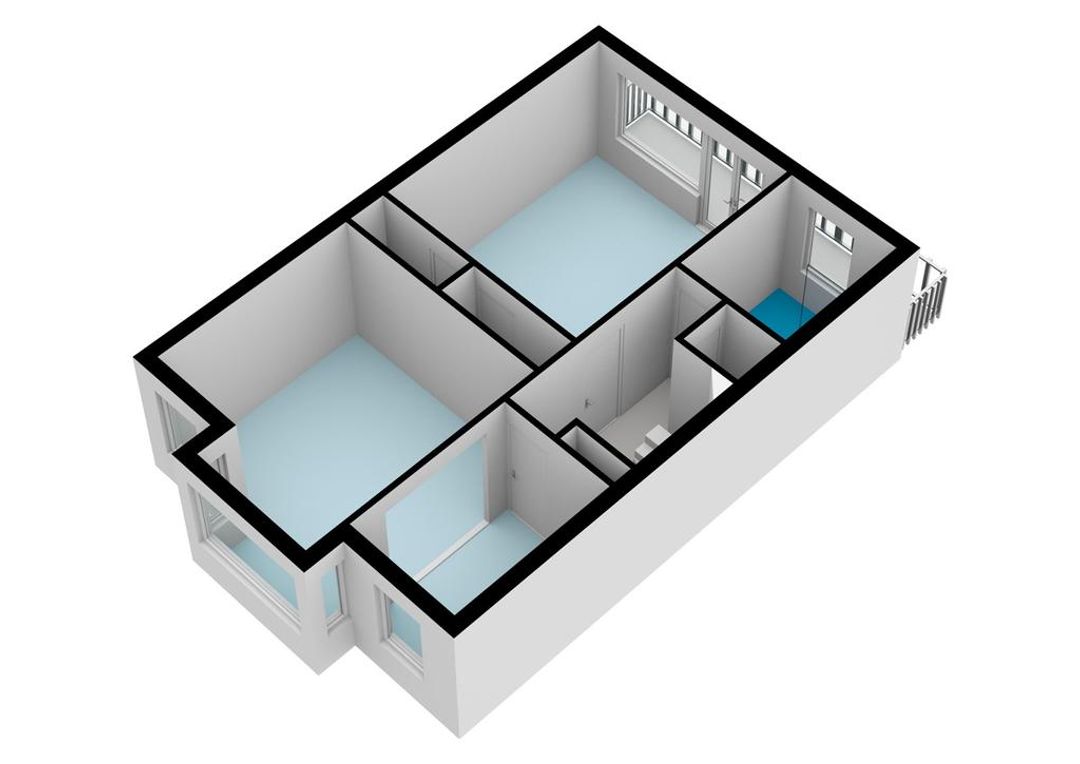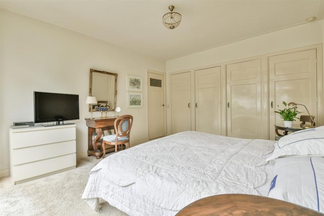 Eerste verdieping: overloop, slaapkamer aan de achterzijde met inbouwkast, airco en toegang tot balkon (circa 6 m²). Aan de voorzijde bevindt zich de tweede ruime slaapkamer, met de mogelijkheid om hier twee slaapkamers van te maken. De ruime badkamer is voorzien van een ruime inloopdouche met handdouche, wastafelmeubel, handdoekradiator en vloerverwarming. Daarnaast beschikt deze verdieping over een separaat toilet.