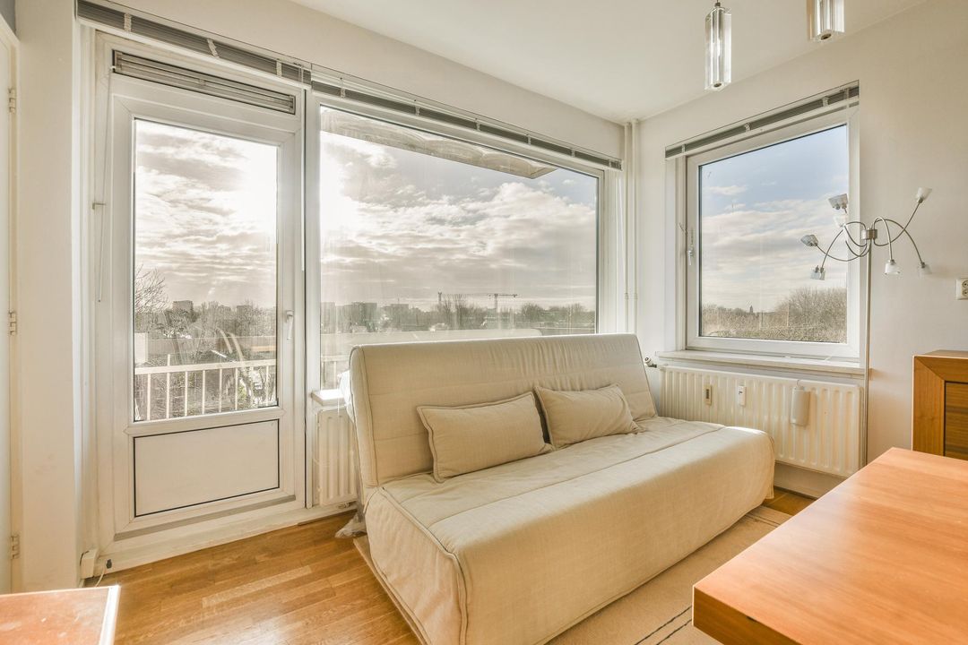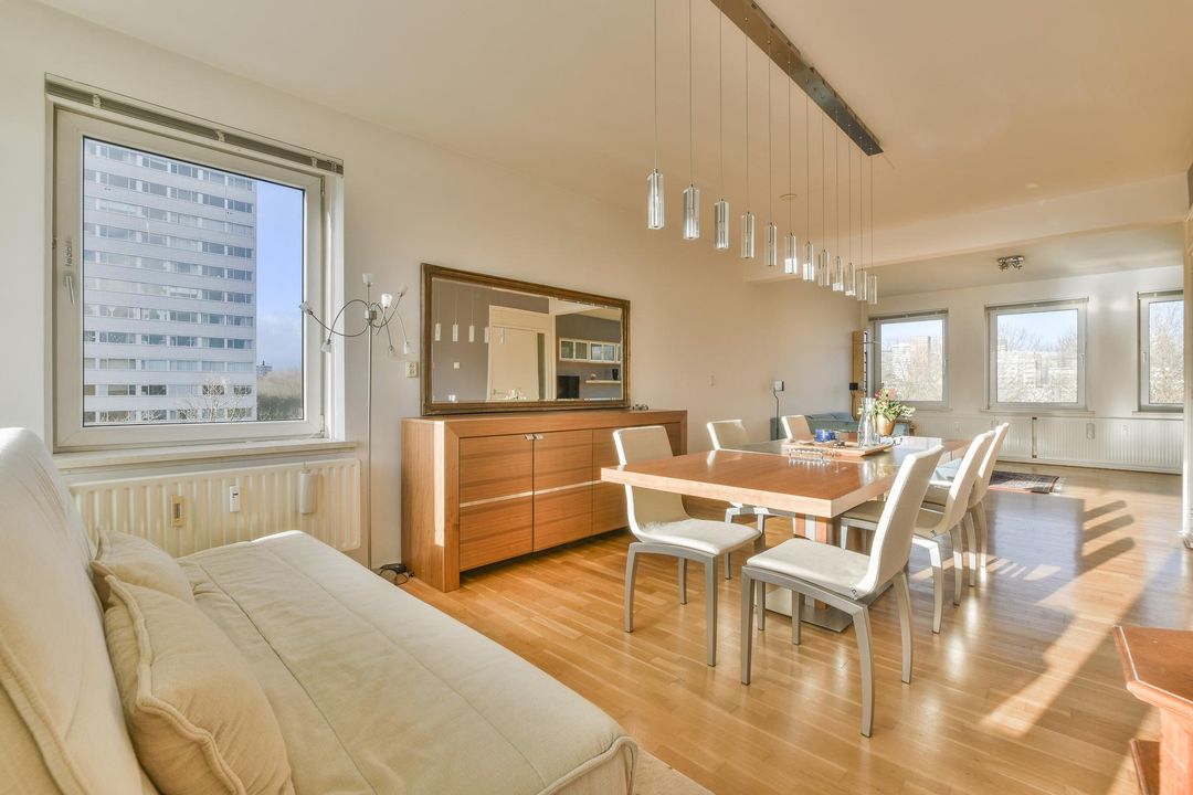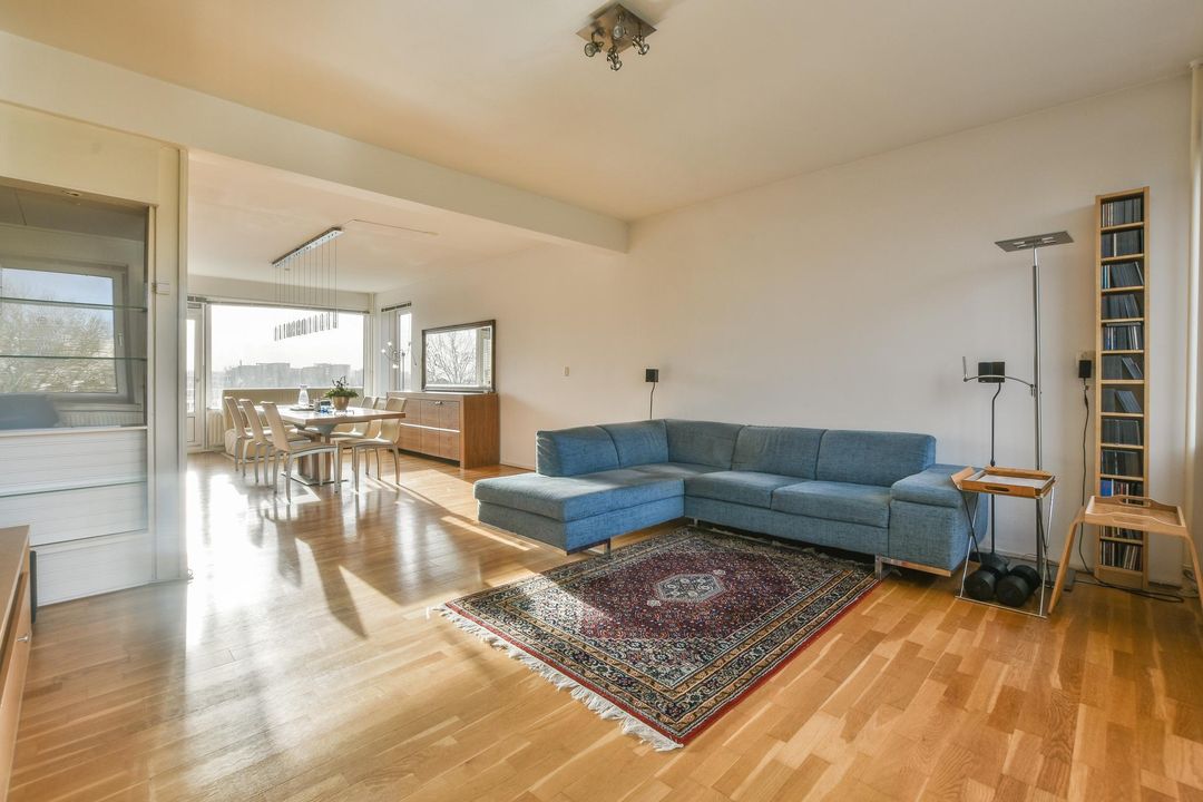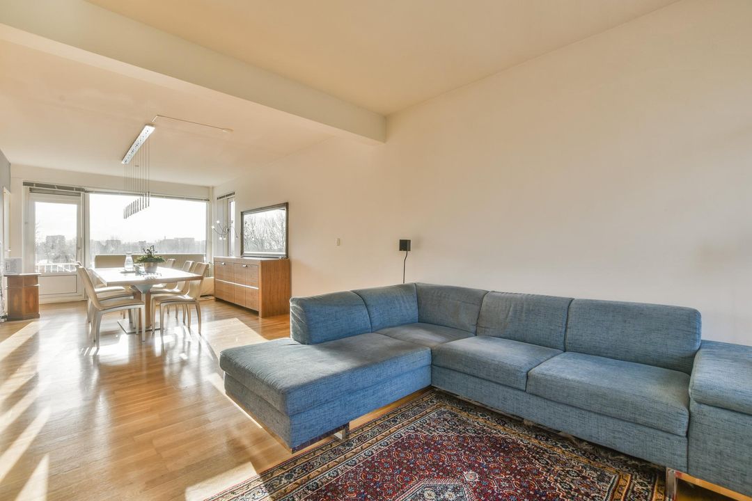 We offer a bright 3-room CORNER apartment (88 m2) located on the SIXTH floor, fantastic views with sunny south facing balcony and a second balcony located on the north. The apartment is located near the popular shopping center Groot Gelderlandplein, the Zuidas, the Amsterdam forest and the Free University of Amsterdam. The apartment is part of a well maintained apartment complex with elevator, secured entrance and storage room on the first floor.