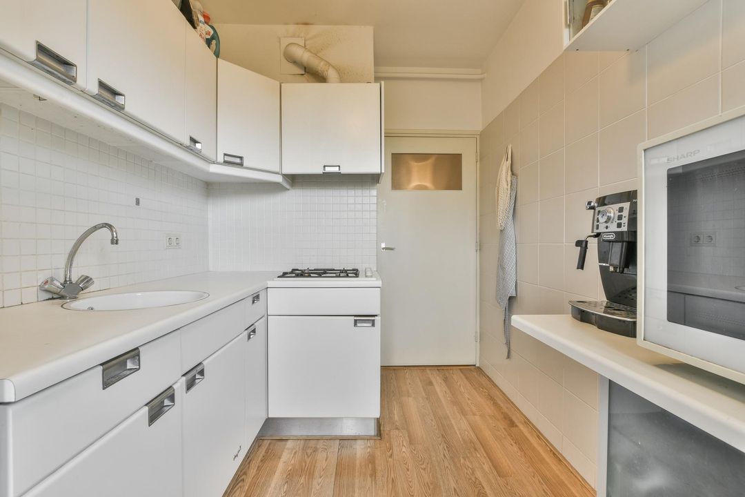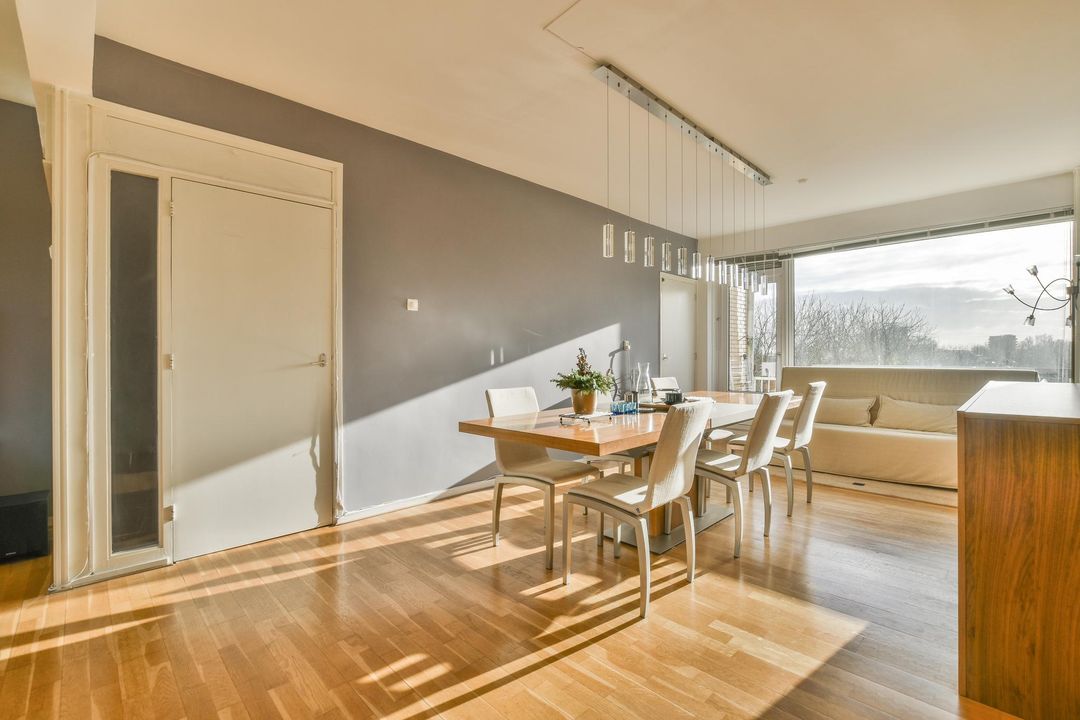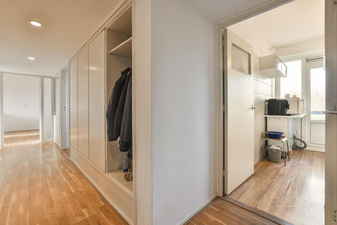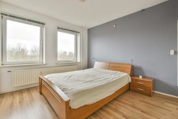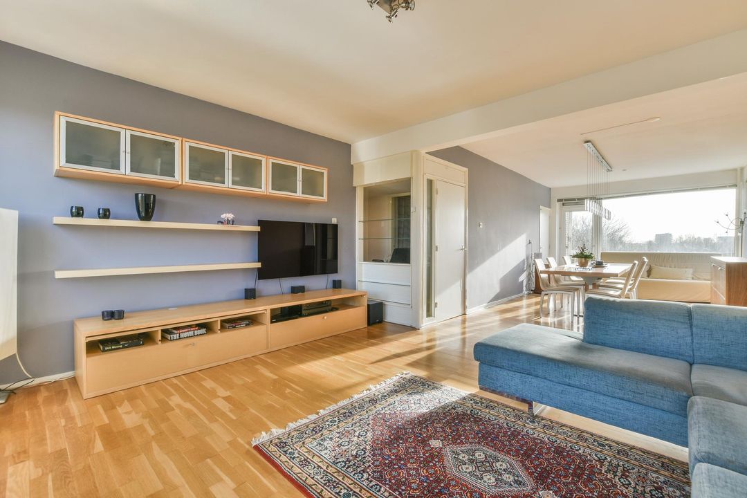 We offer a bright 3-room CORNER apartment (88 m2) located on the SIXTH floor, fantastic views with sunny south facing balcony and a second balcony located on the north. The apartment is located near the popular shopping center Groot Gelderlandplein, the Zuidas, the Amsterdam forest and the Free University of Amsterdam. The apartment is part of a well maintained apartment complex with elevator, secured entrance and storage room on the first floor.