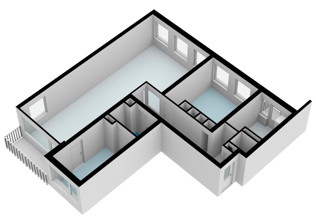 Entree appartement, gang met meterkast, separaat toilet en toegang tot de keuken en toegang naar het balkon op het noorden. De ruime woonkamer met eetgedeelte heeft zowel aan de voor- en achterzijde grote raampartijen waardoor de ruimte erg licht is. Door de gunstige hoekligging van het appartement beschikt de woonkamer over een extra zijraam, voor een extra mooie lichtinval. Verder is vanuit de woonkamer het balkon op het zuiden toegankelijk alsmede de 2e studeer/slaapkamer. De ruime slaapkamer met inbouwkasten is naast de keuken gelegen. Vanuit de hal is de badkamer toegankelijk welke is voorzien van ligbad met douche, wastafel en wasmachine/droger aansluiting. Tevens is vanuit de badkamer eveneens de 2e studeer/slaapkamer bereikbaar.