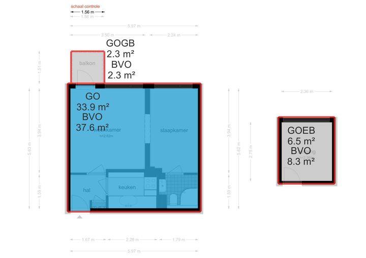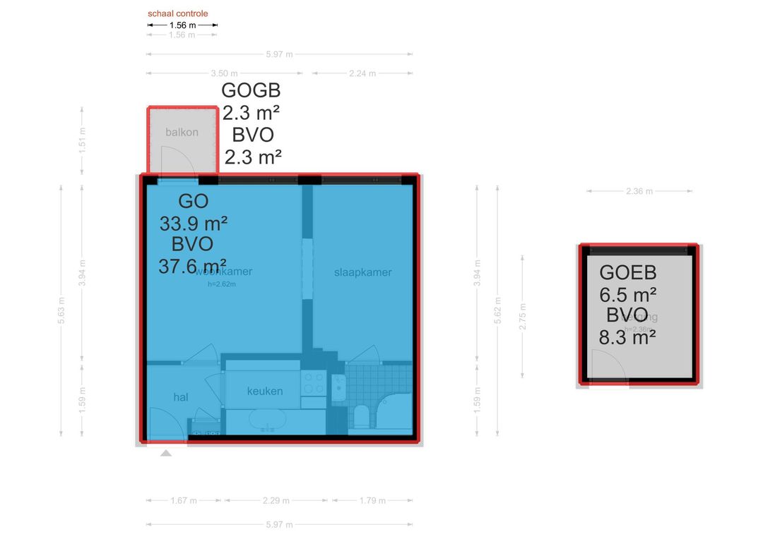 Het verkochte is gemeten met gebruikmaking van de meetinstructie, welke is gebaseerd op de normen zoals vastgelegd in NEN 2580. De meetinstructie is bedoeld om een meer eenduidige manier van meten toe te passen voor het geven van een indicatie van de gebruiksoppervlakte. De meetinstructie sluit verschillen in meetuitkomsten niet volledig uit door bijvoorbeeld interpretatieverschillen, afrondingen en beperkingen bij het uitvoeren van een meting.
