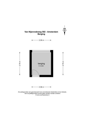 Op de begane grond bevindt zich een eigen berging van ca. 6,5 m2 behorende bij het appartement.