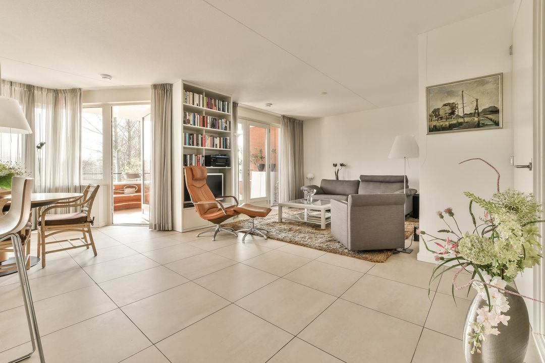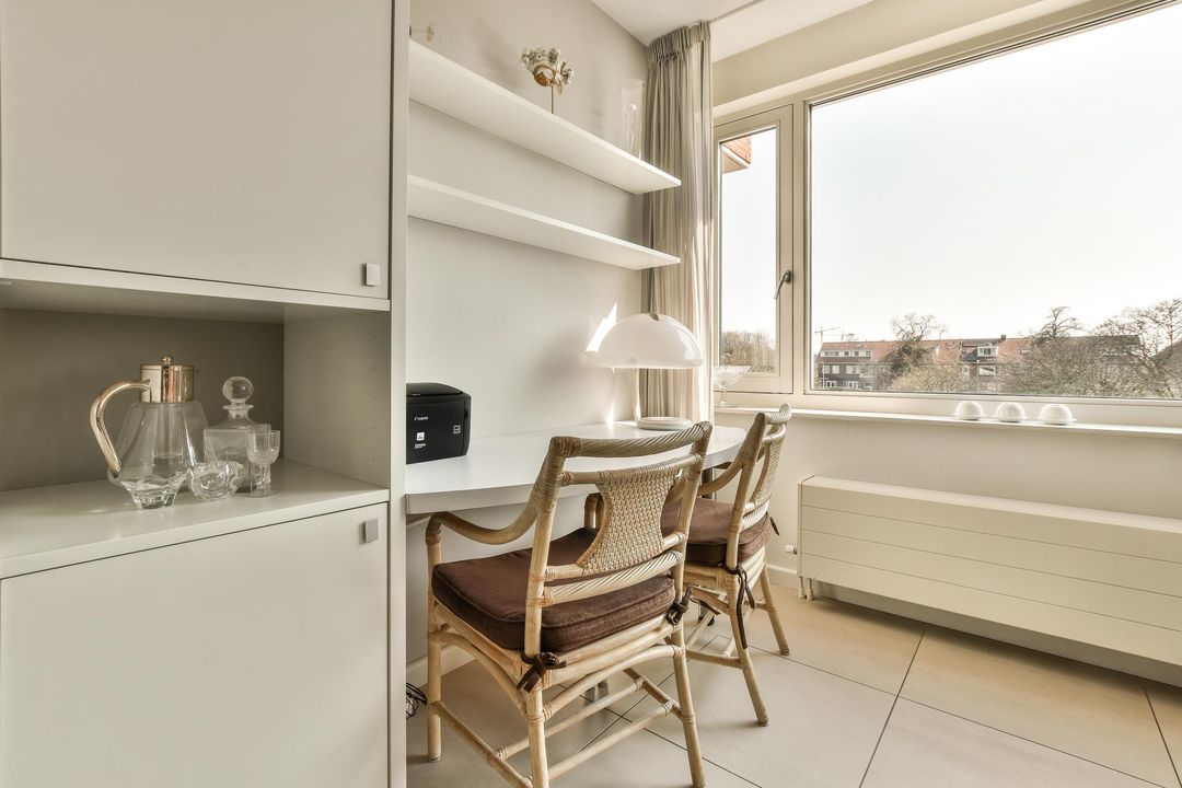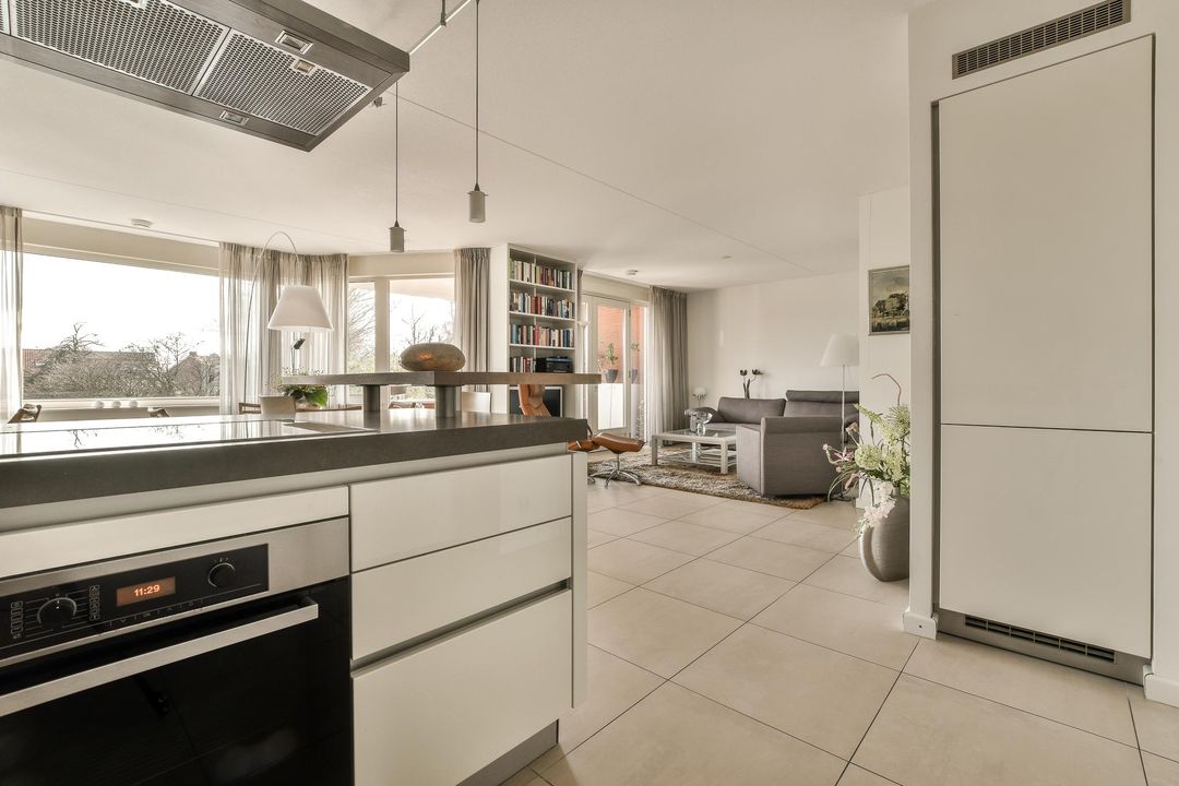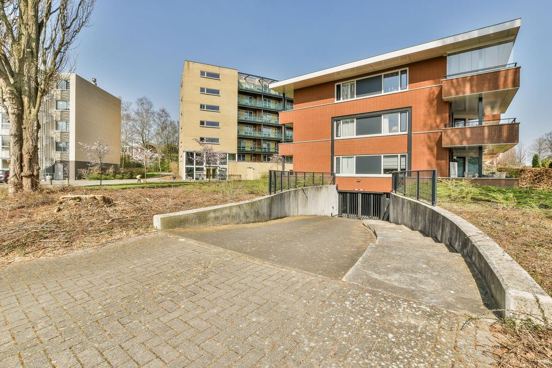Een lichte en ruime woonkamer over de breedte van het appartement met de moderne U-vormige open keuken voorzien van diverse inbouw apparatuur. Het balkon bereikt u middels twee openslaande deuren en biedt genoeg ruimte voor een gezellig zitje en een schitterend uitzicht op de tegenovergelegen vijver. Er is een zeer ruime slaapkamer, met grote raampartij, een kastenwand waar u extra veel bergruimte heeft. De tweede slaapkamer is thans in gebruik als logeer-/werkkamer. De royale badkamer beschikt zowel over een bad als een inloopdouche, breed wastafelmeubel en een 2e toilet.