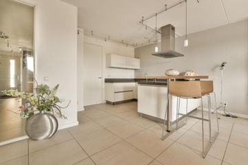 – moderne keuken met Miele inbouwapparatuur: vaatwasser, combinatie oven en inductie kookplaat, afzuigkap en koelkast met 3 vrieslades;