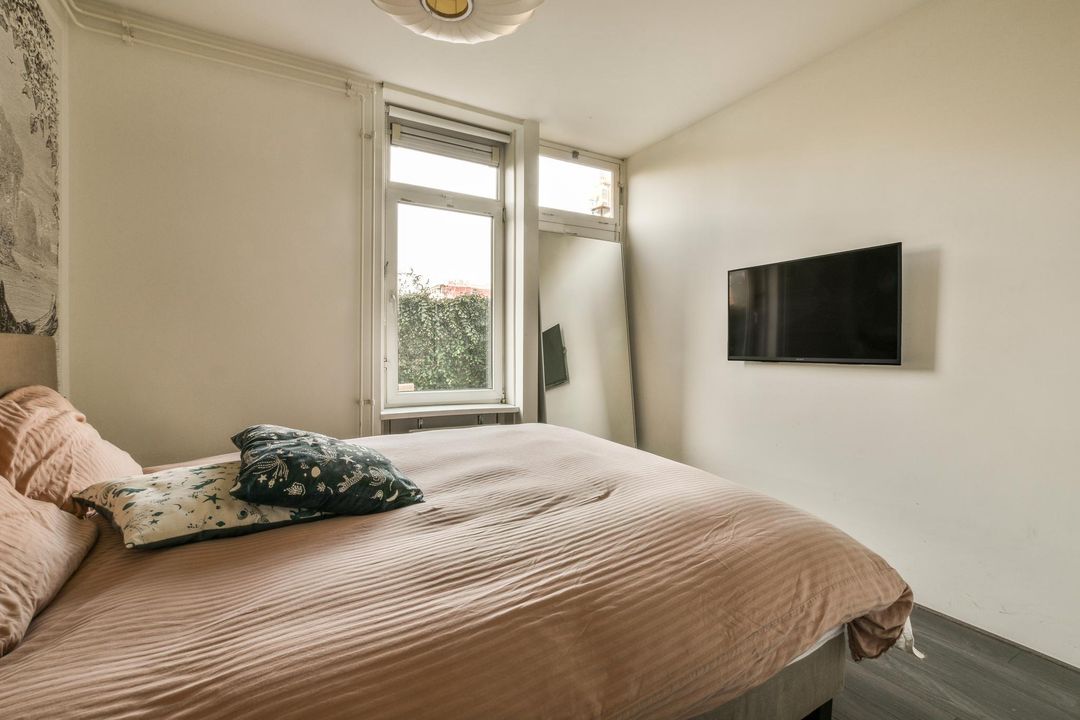 Entrance of the apartment on the first floor, spacious hall which gives access to all rooms and separate toilet. At the front is the neat kitchen which is equipped with a 4-burner stove, oven, dishwasher and fridge with freezer drawers. Adjacent is the bathroom which is equipped with shower, washbasin and plumbing for a washer and dryer. At the rear of the house is the bedroom with a nice view of the backyard. The living room is situated at the end of the hall and due to its many large windows, east and west, it has beautiful natural light. The living room offers the possibility of creating a spacious 2nd bedroom (to your own layout), please see our alternative floor plan. From the living room there is access to the very spacious backyard (approximately 40 m²). The garden is located on the southwest and here you can enjoy the sun from noon until late in the evening. In the garden there is room to create a nice roof or porch so you can enjoy the spacious garden all year round. In addition, the garden is adjacent to a park, which gives an extra wide feeling. The apartment also has a separate storage room.