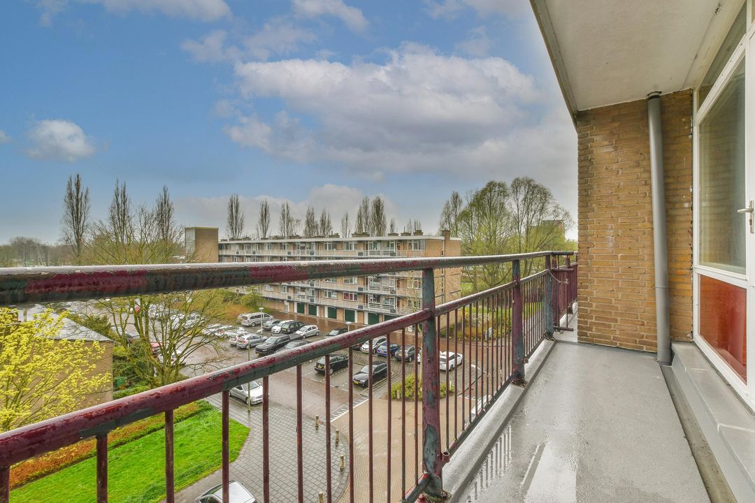 Zéér gunstig gelegen 3/4-kamer appartement met balkon op het zuiden. Goed ingedeeld op de bovenste (4e) etage van het complex met vrij en weids uitzicht zowel aan voor- als achterzijde.